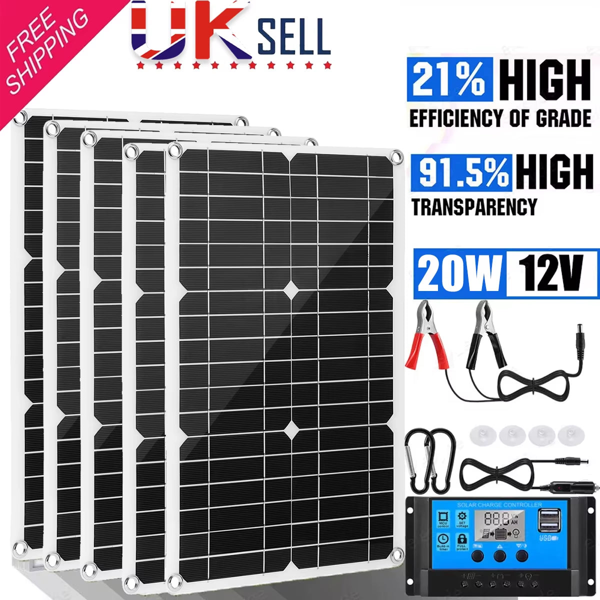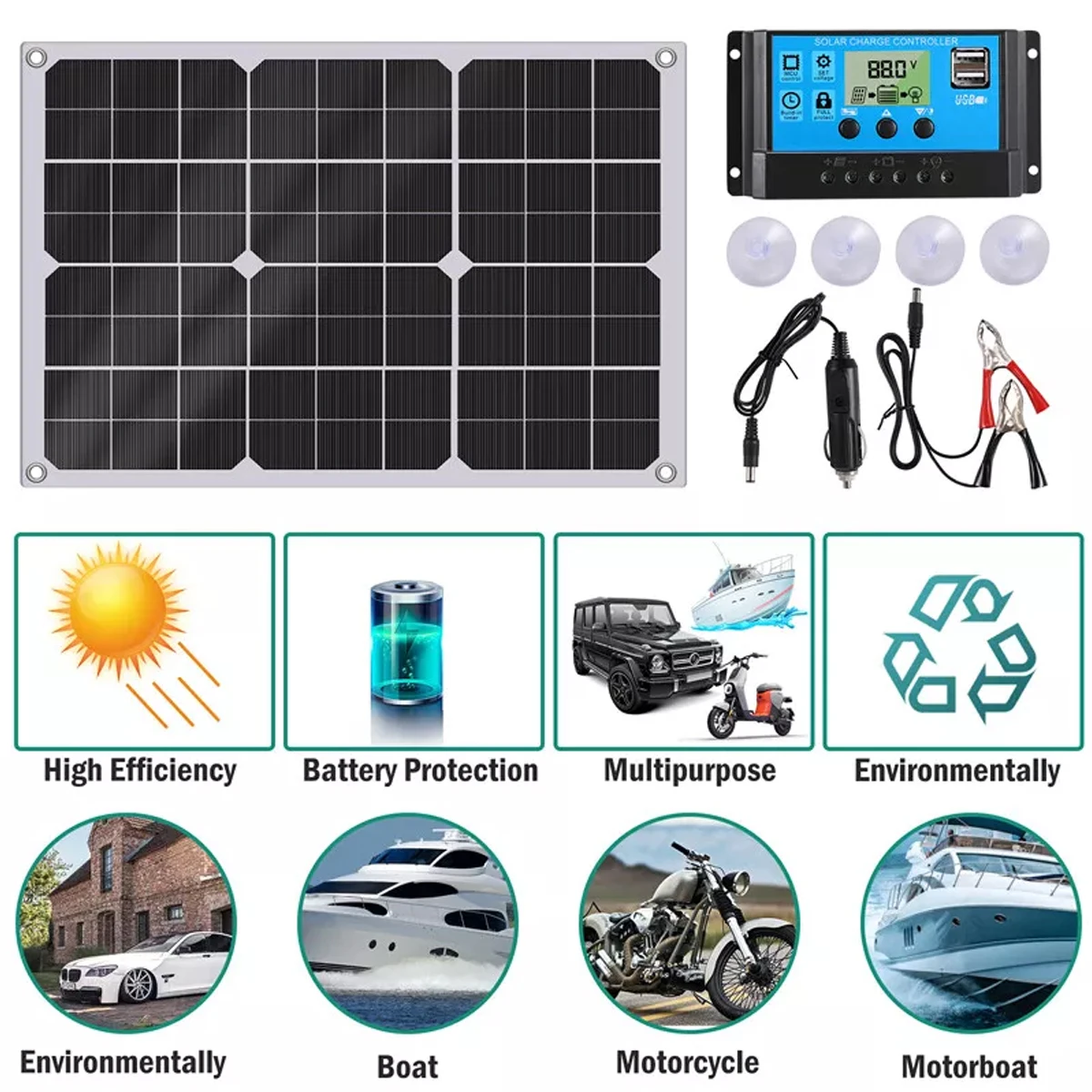 20W Watt Solar Panel Kit For Battery Maintainer & Trickle Charging With 100A Solar Charge Controller, It Can Intelligently Charge Various 12V Batteries, And Provide All-Round Protection For Batteries Such As Overcharge, Overdischarge, Overvoltage, Overcurrent, Short Circuit, And Reverse Connection.