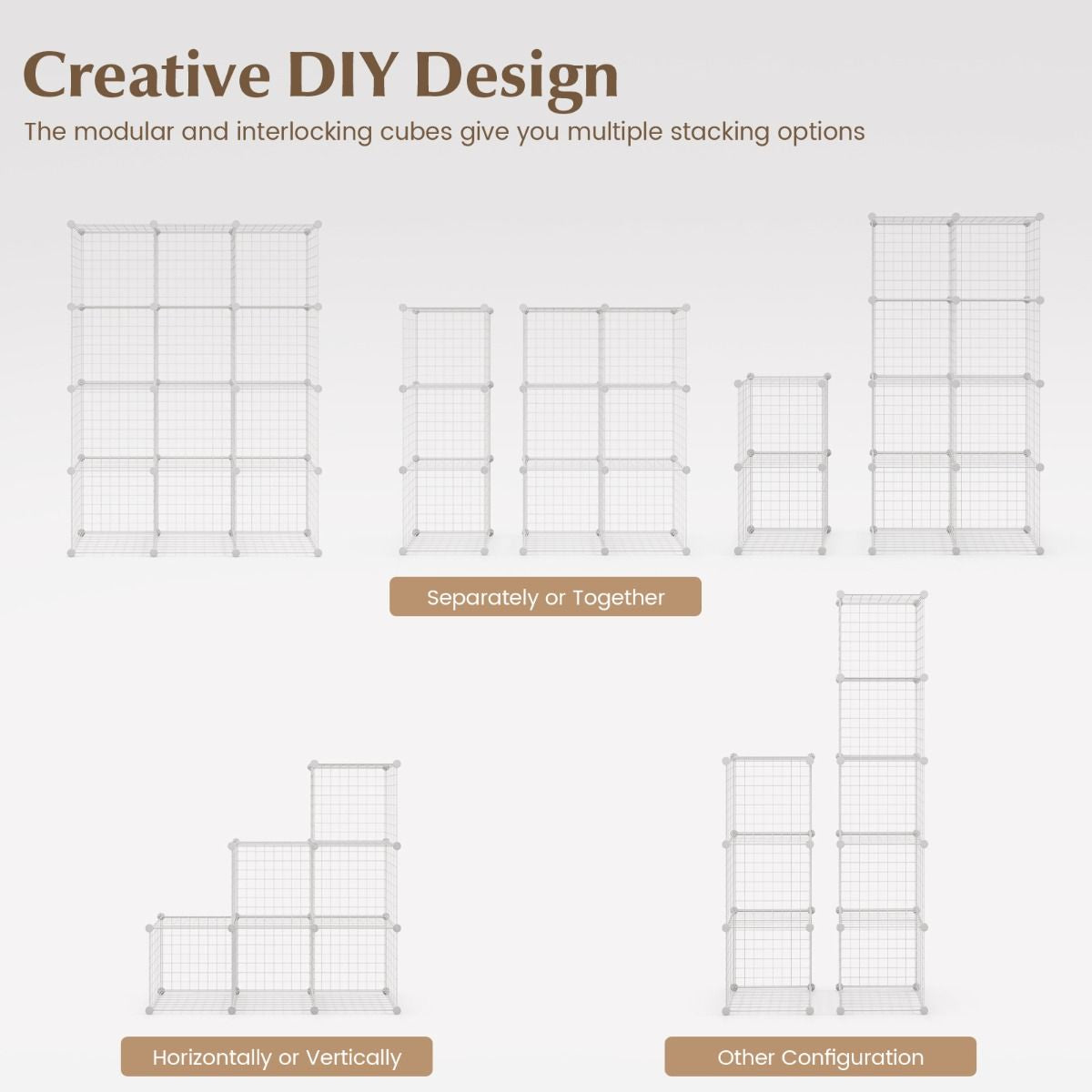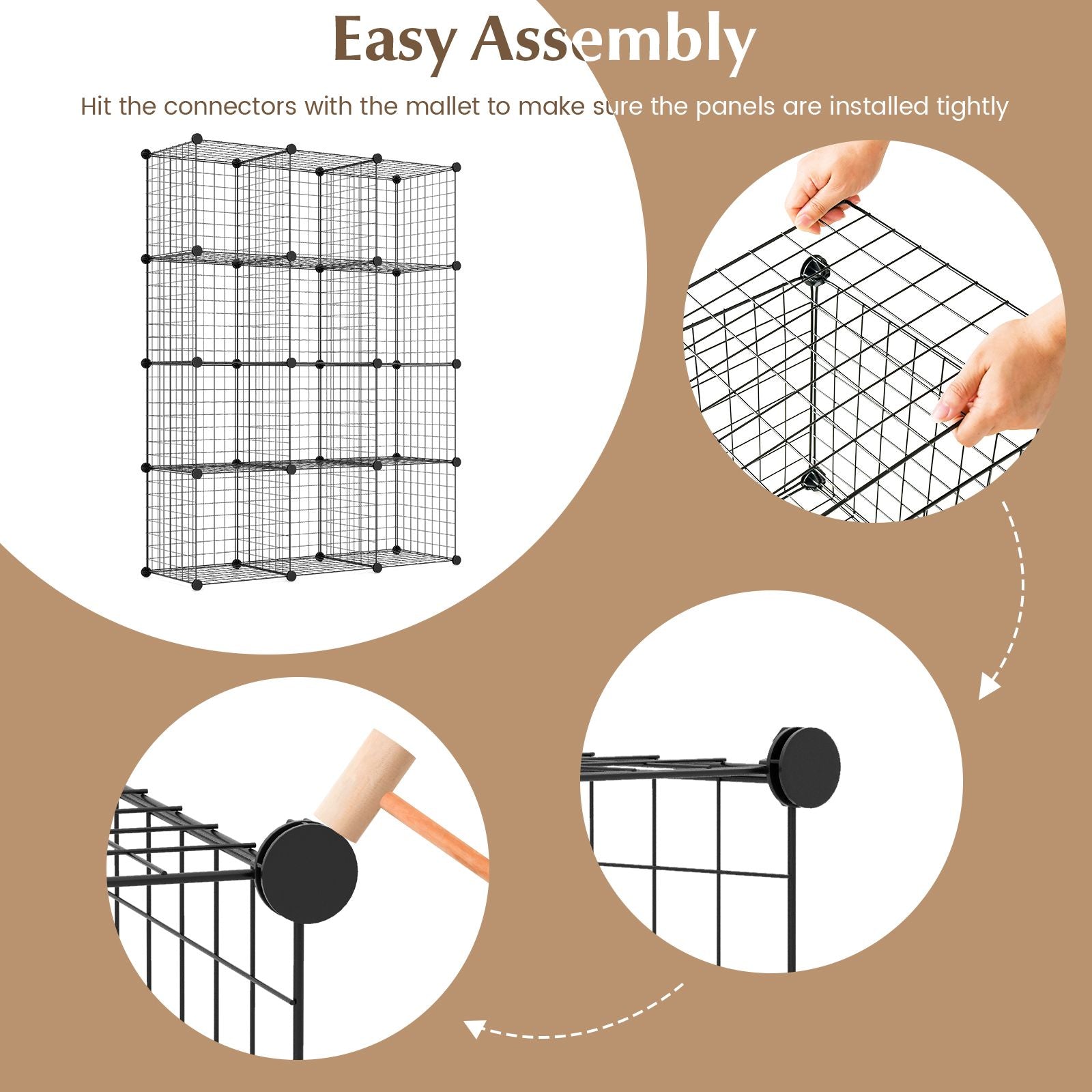 Hassle-free Installation: Simple modular structure makes this wire cube storage organizer easy to assemble and disassemble. With the help of the mallet (included in the package) and the detailed instruction, you can easily install the whole unit, or create different blocks to fit different spaces.