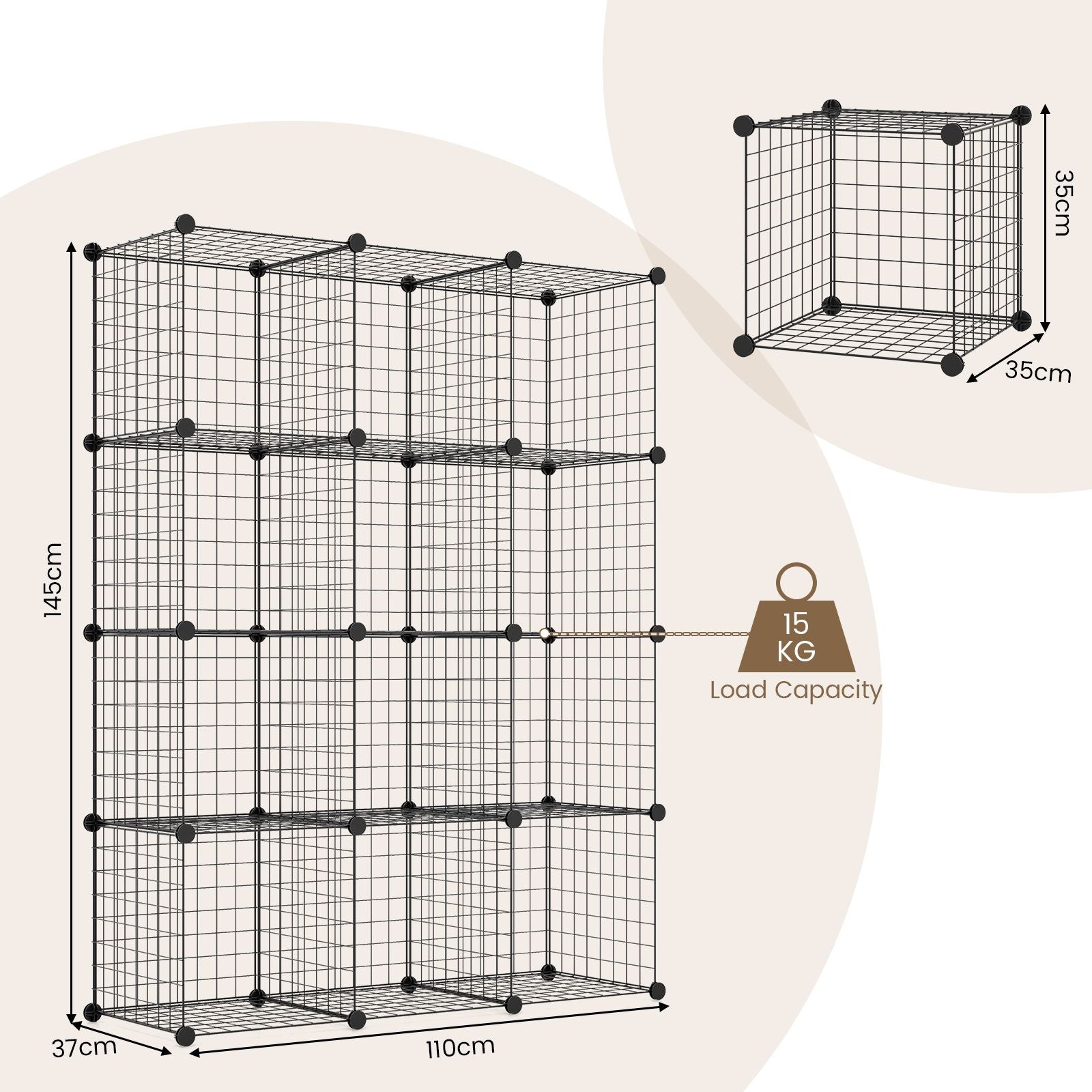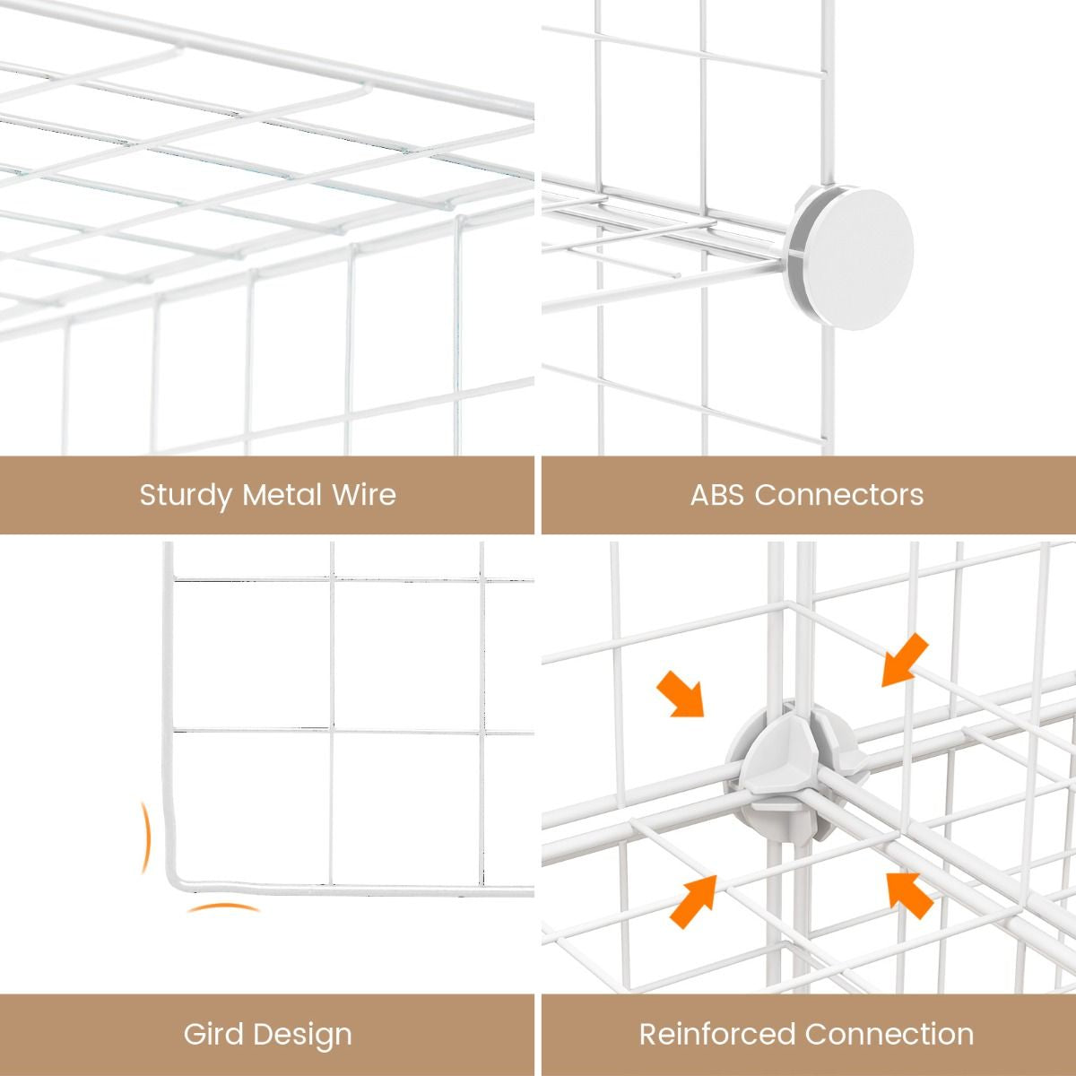 Robust and Stable Construction: This metal storage organizer is made of powder-coated metal wire panels which prevent rust and wear for long-lasting durability. Besides, durable ABS plastic connectors are designed to secure the whole structure firmly for more stability. Each cube holds up to 15 kg.