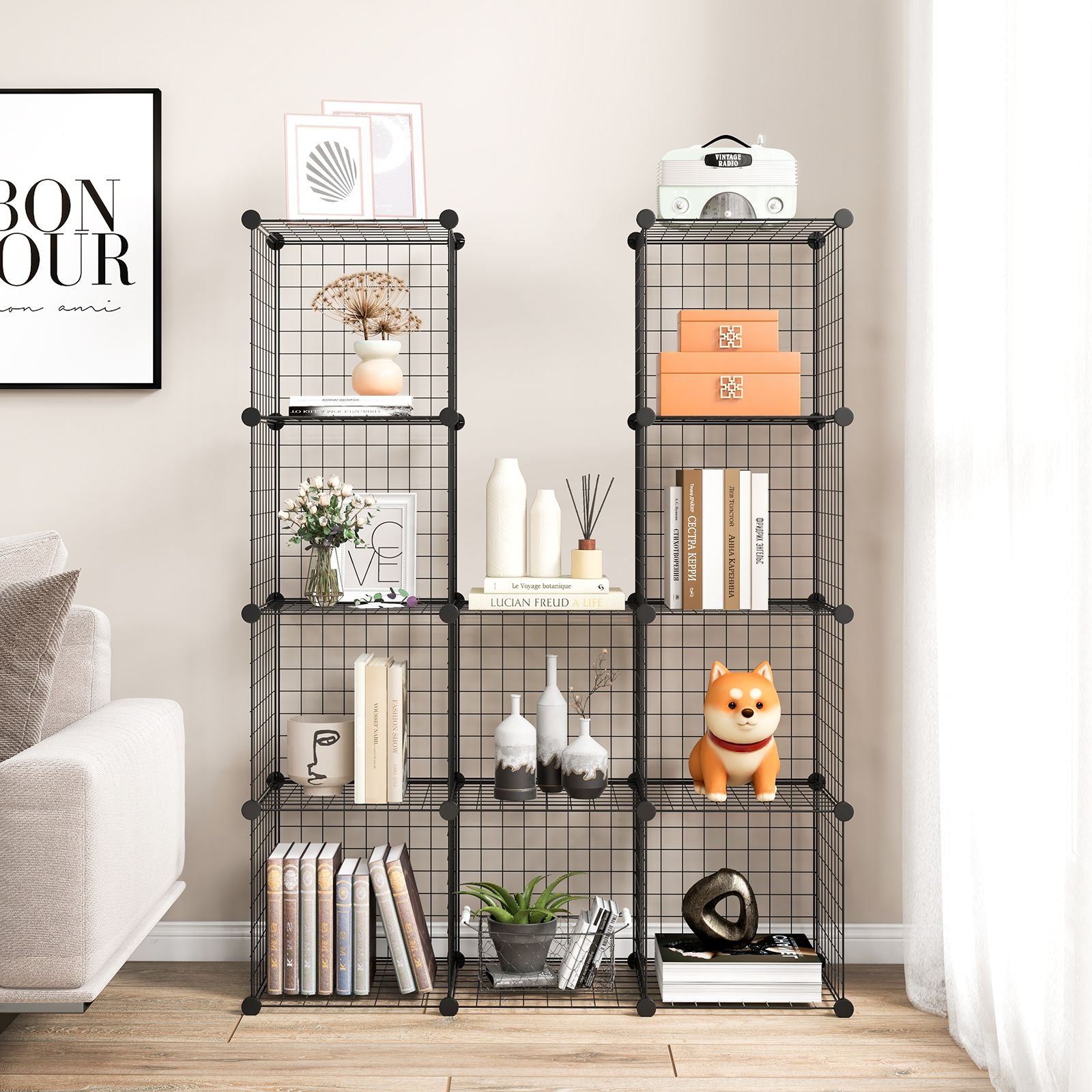 Large-Capacity Storage Space: Designed with 12 cubes for storage, 43 L capacity per cube, this wire grid storage organizer provides ample storage space to hold your various items, such as books, clothes, shoes, bags, toys, decorations and more, keeping your room tidy and organized.