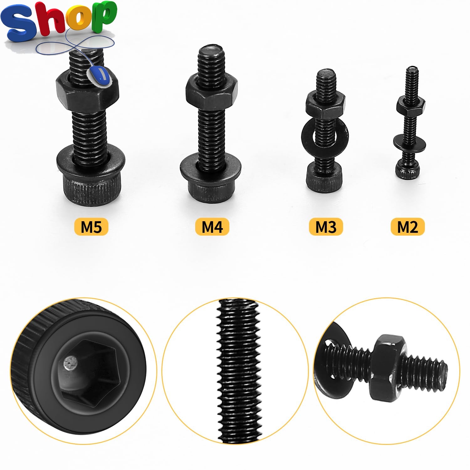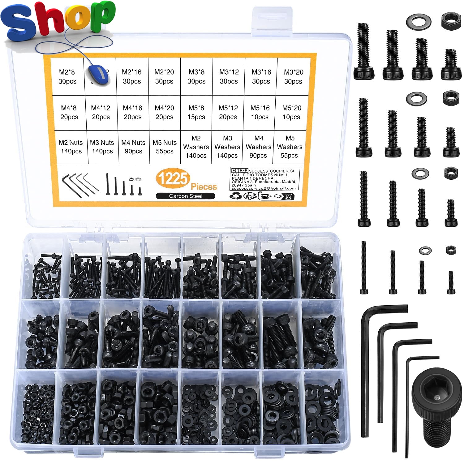 - Our socket head cap screws with nuts and washers contains screws with matching nuts and washers in sizes M2, M3, M4, M5, total about 1225 pieces.
