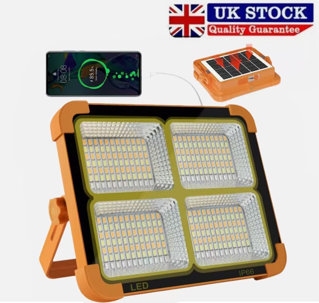The portable solar work light can be charged through solar energy and USB cable. It has four built-in 12000mAh batteries and can be used for about 8 hours under low brightness. This solar lamp can also be used as a charging bank for mobile phones, iPads, computers, etc. Asking price