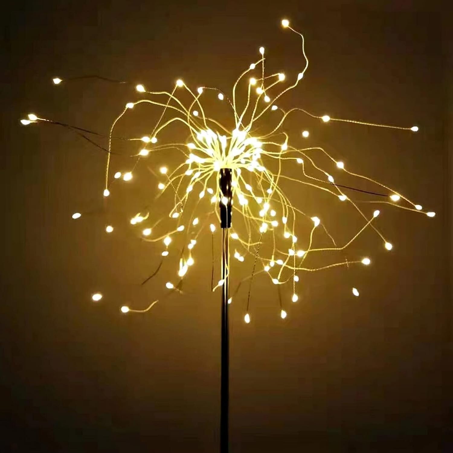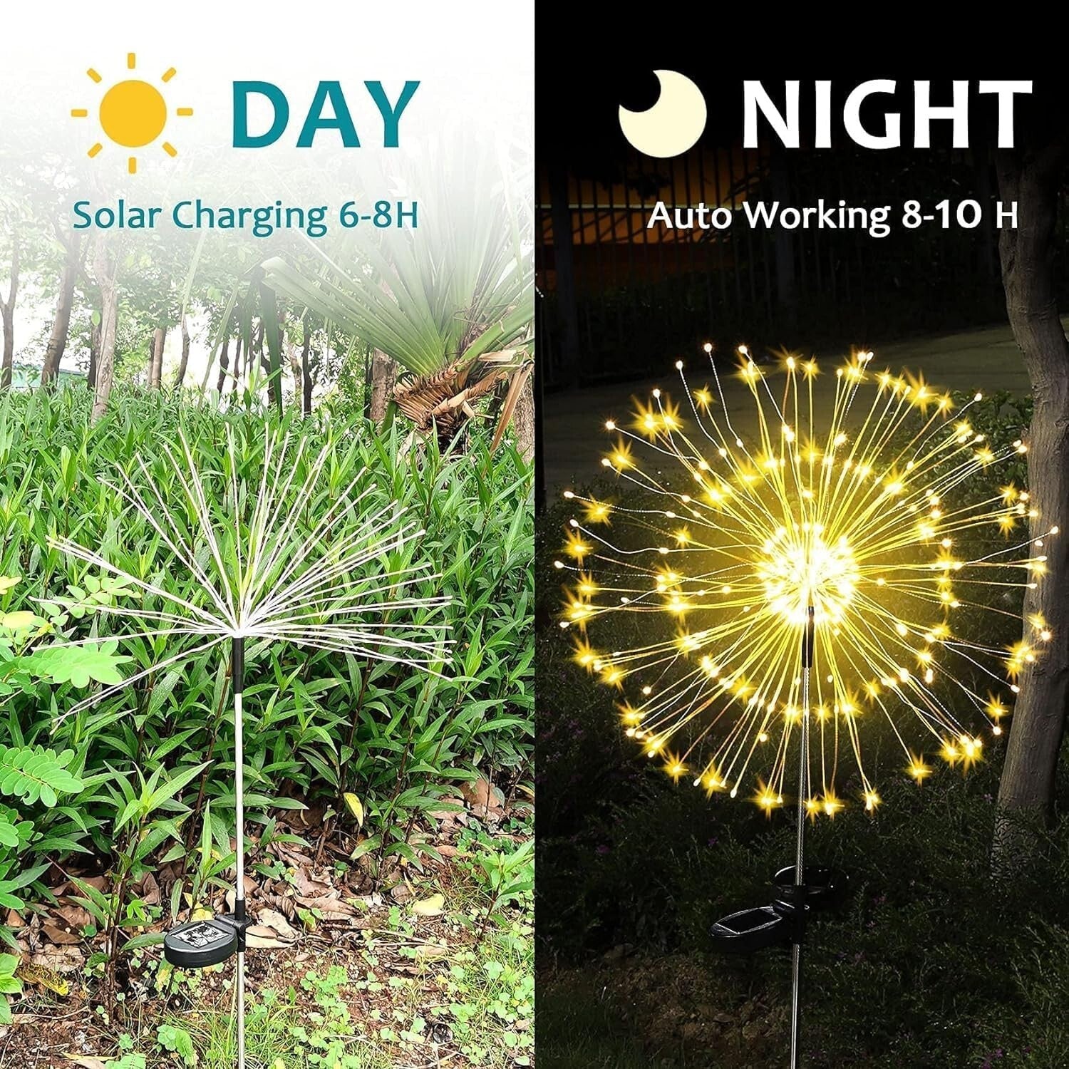 【New Generation - 150 LEDs Creative Solar Garden Lights】 Solar Fireworks lights are supported by highly elastic wires,each light has 150 LEDs,and easy to DIY any shape,including,but not limited to, flower, heart, spiral, spherical. Not only are these fireworks lights perfect for gardening enthusiasts, but they also make great decorations for various holidays such as Halloween,Christmas,Wedding,Thanksgiving Day.