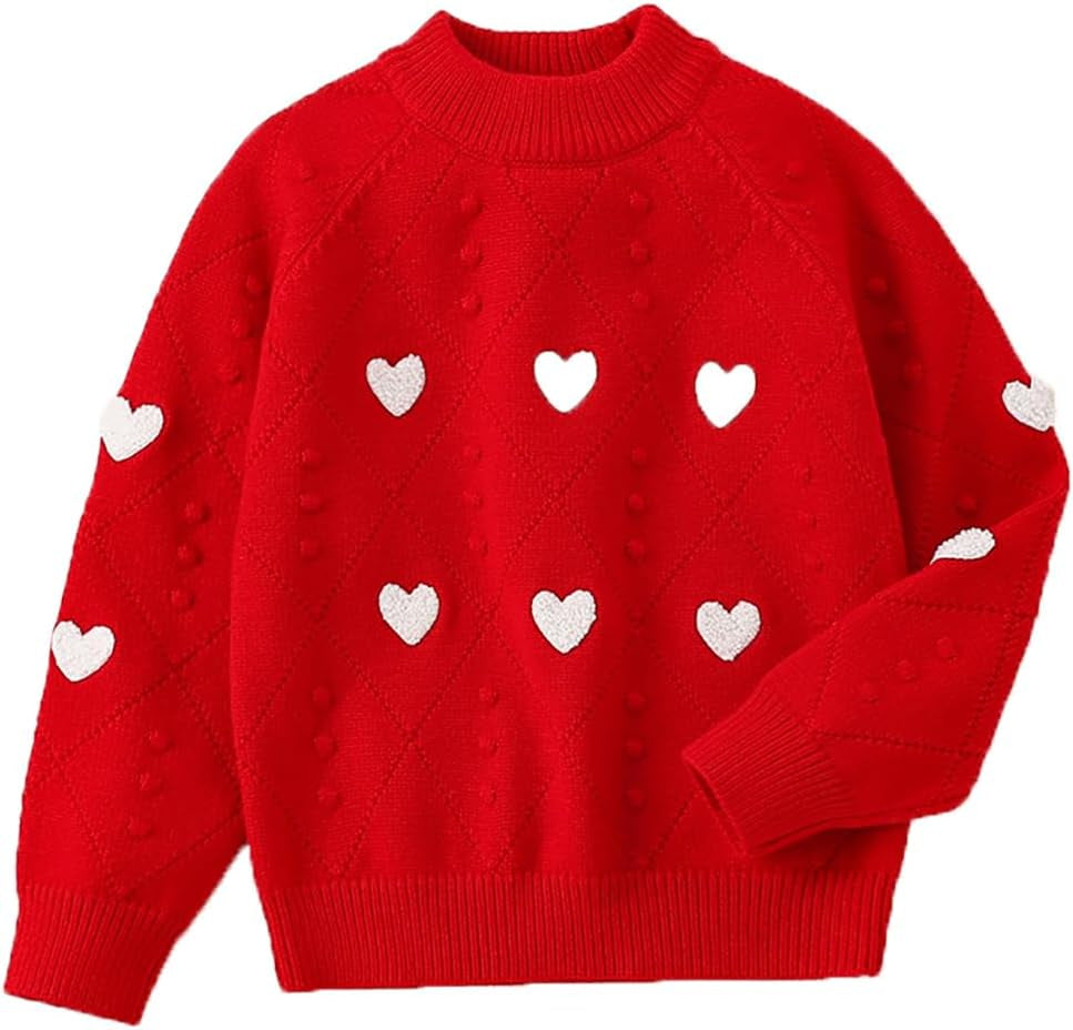 2-7T Spring Fall Little Girls 2Pcs Clothing Set Heart Knit Sweater and Straight Jeans