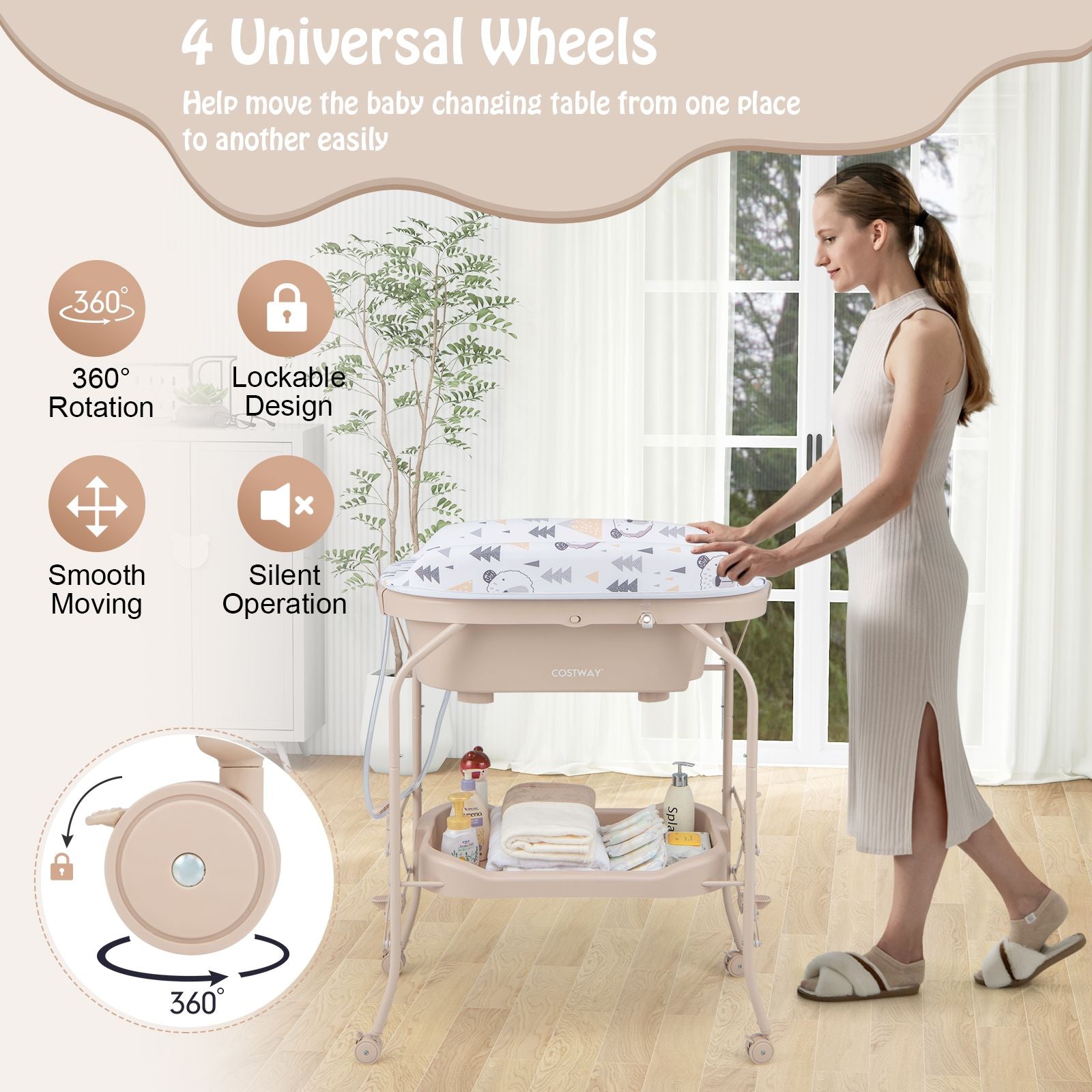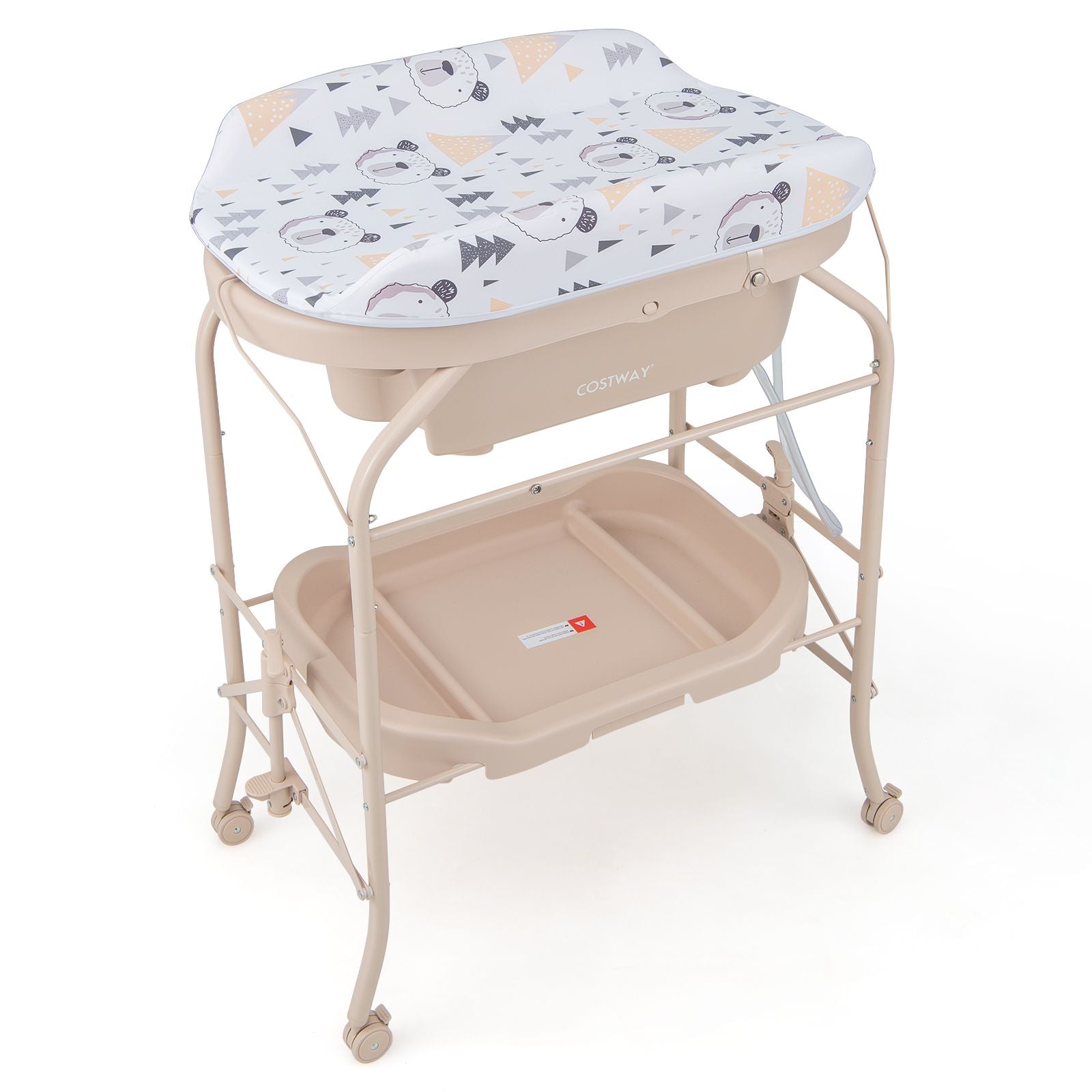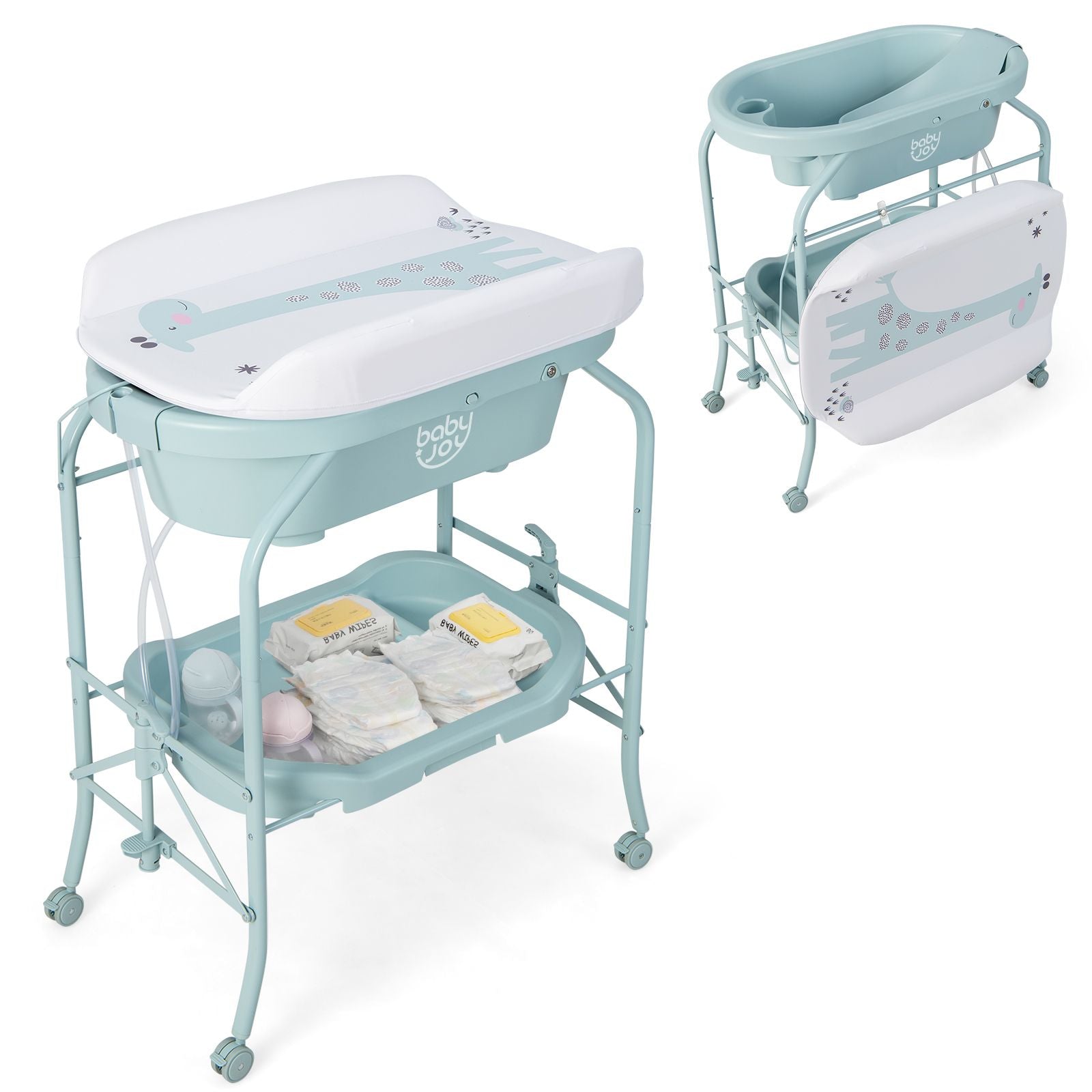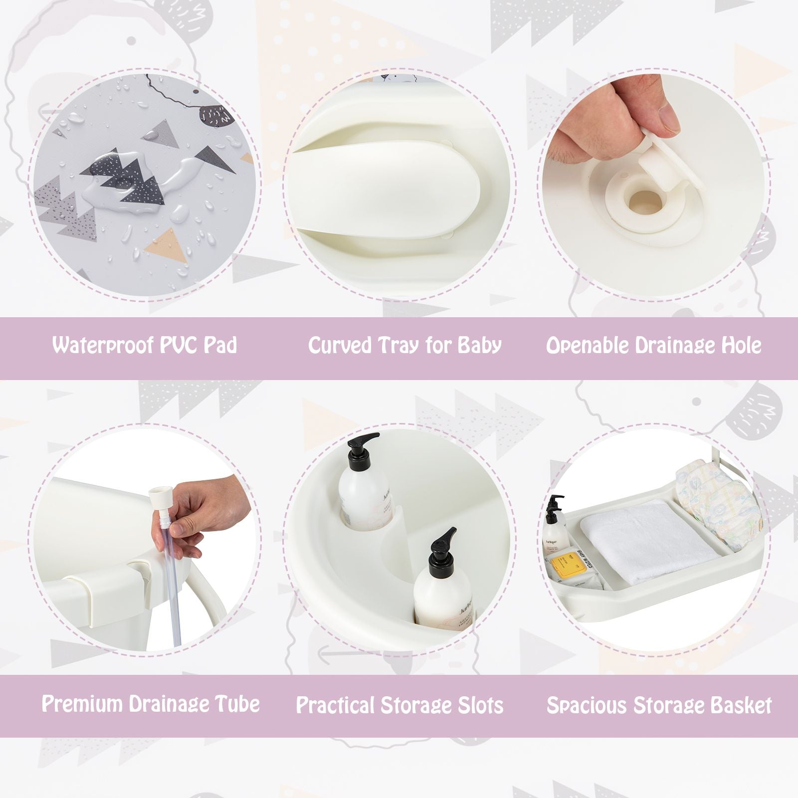 Multipurpose Baby Changing Table: This baby changing table with bathtub allows you to use it to change diapers or clothes for your baby, massage and nurse your baby. By removing the changing pad, you can bathe the baby with the bathtub. Moreover, the large storage basket holds baby's belongings for easy access.