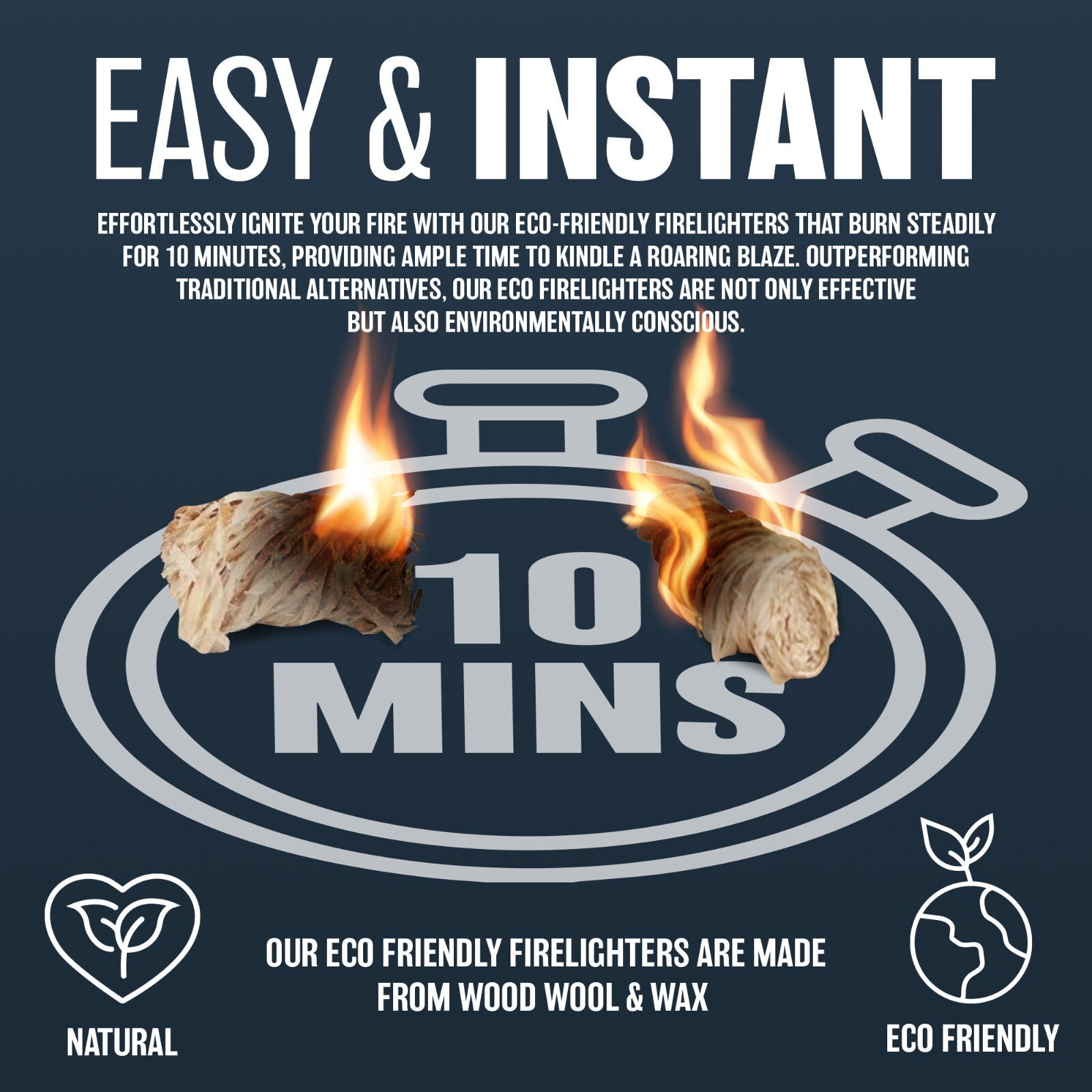 • Eco - Handmade renewable and wax coated, these natural firelighters are eco friendly