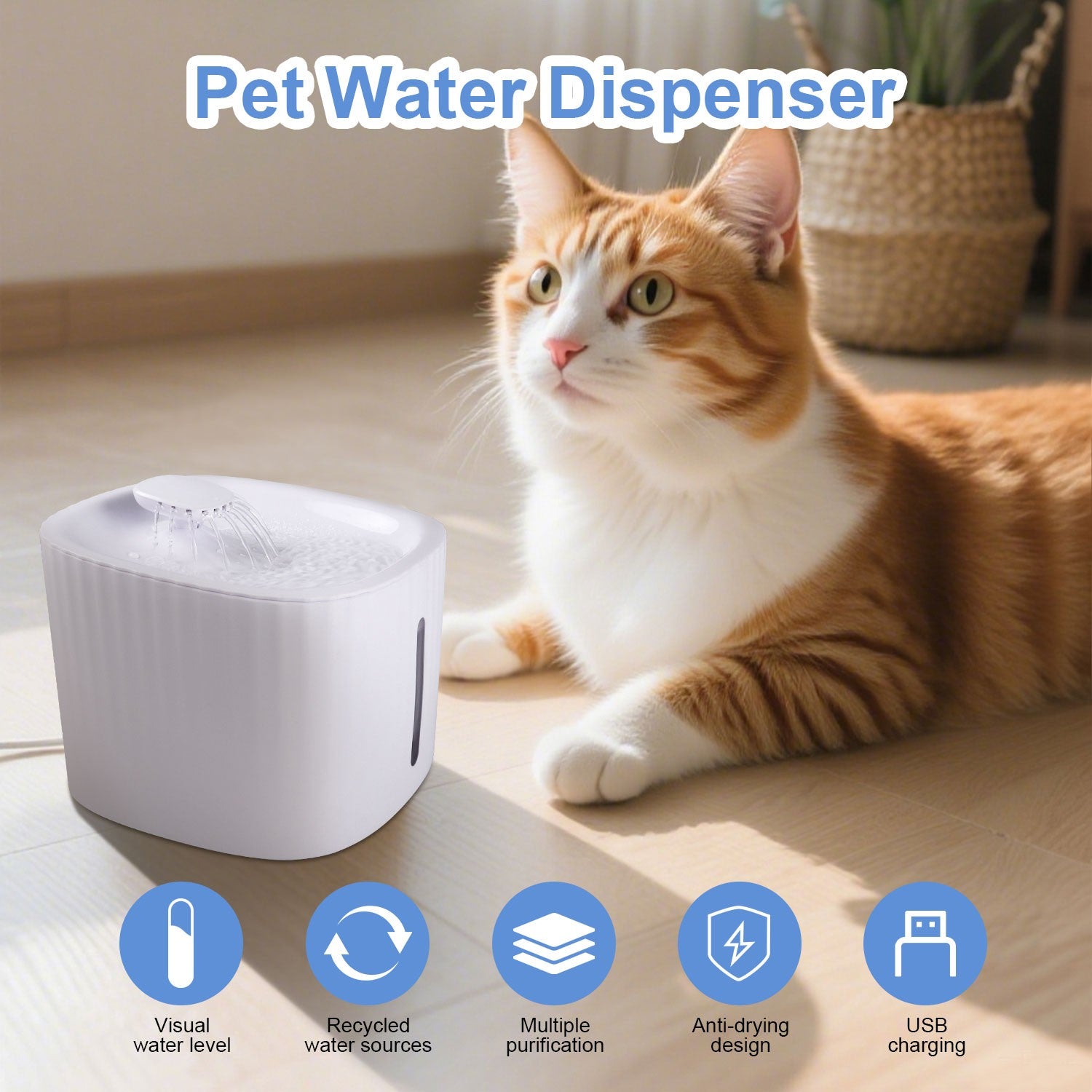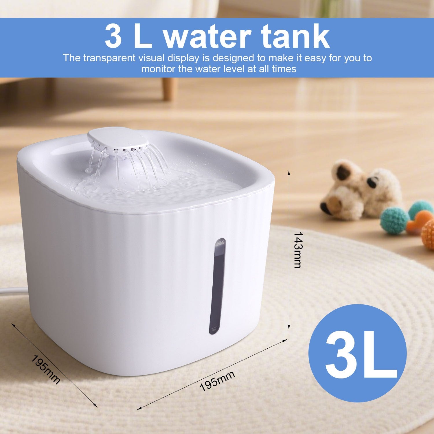 3L Cat Water Fountain Electric Pet Dog Drinking Bowl USB Automatic Dispenser
