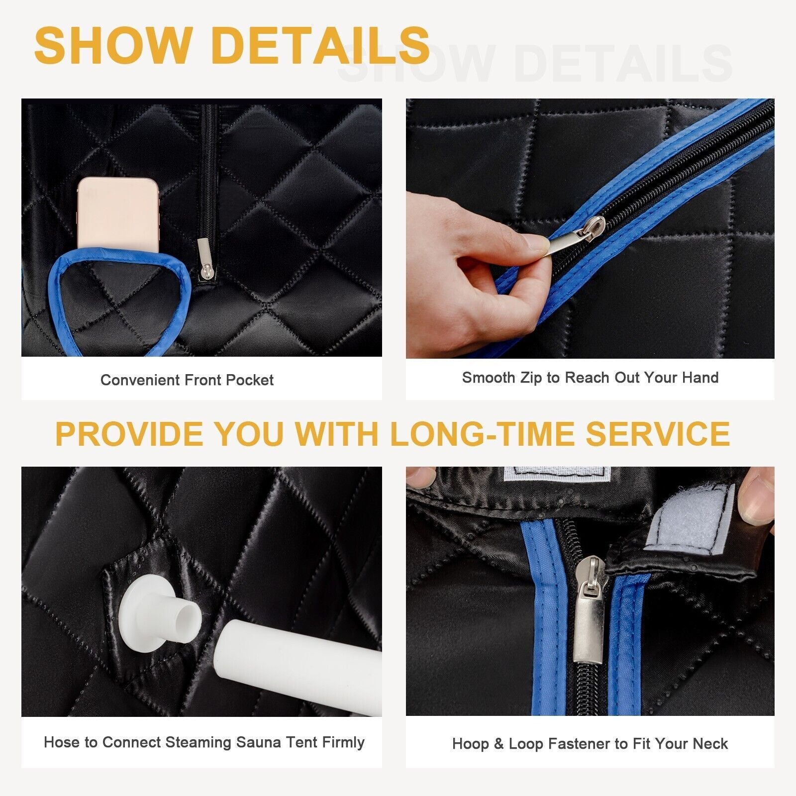 Home Sauna Spa: The steam sauna can be used at any time to save your money to the beauty salon shop. This spa steamer with waterproof fabric features better heat insulation performance. The front pocket is convenient for placing the remote control. Two zipper openings allow you to extend your hands.