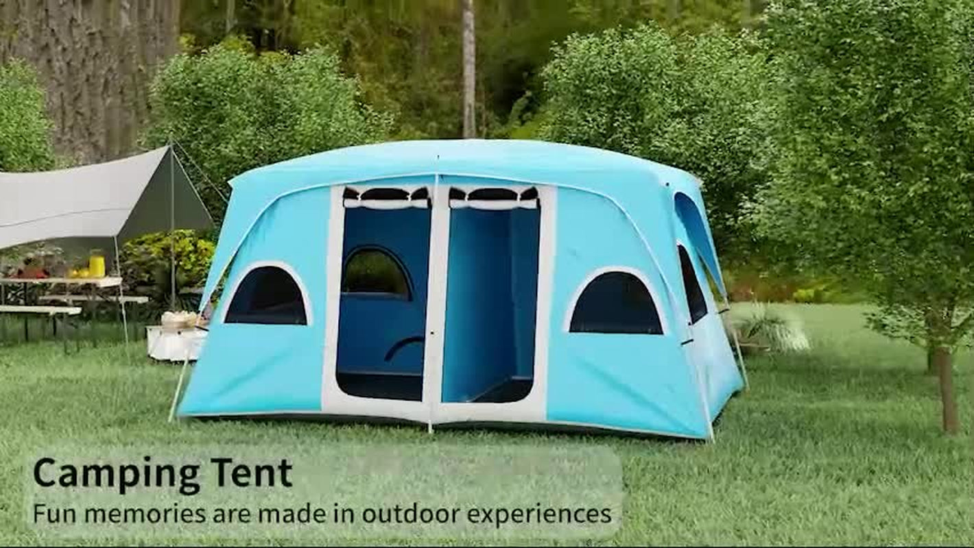4-8 Person Family Camping Tent with 2 Room Mesh Windows, Easy Set Up