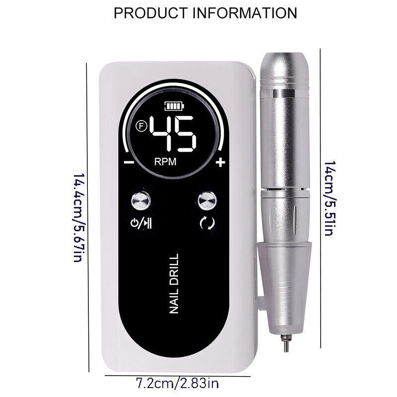Rechargeable & Portable: This cordless nail drill machine comes with a large capacity battery, can be used for up to 8-10 hours, portable size (14.4 x 7.2 cm / 5.67 x 2.83 in) and light weight of this electric nail file make it compact to pack into your bag for carrying out conveniently anywhere anytime.