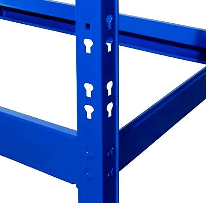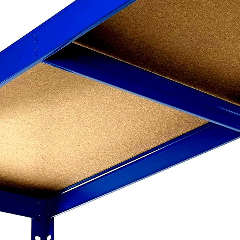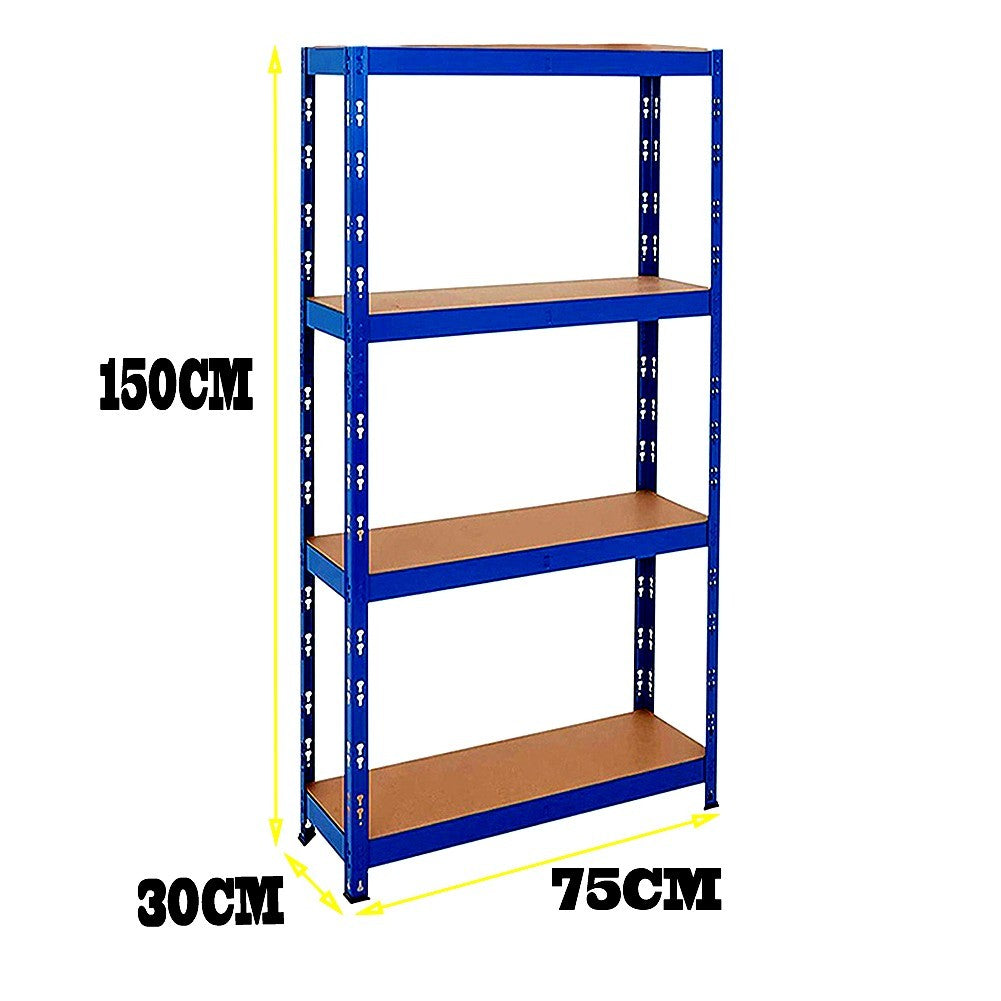 Features 5 adjustable MDF Shelf Boards Shelf Super strong MDF Boards Wight Capacity: 150kg per shelf, total capacity 750kg Fully Adjustable to any level Shelf just snaps together (no bolts required), just use a rubber mallet (not included) Overall Dimensions: 1500mm(Height) x 750mm (Width) x 300mm (Depth) Colour: BLUE