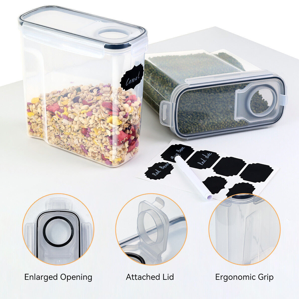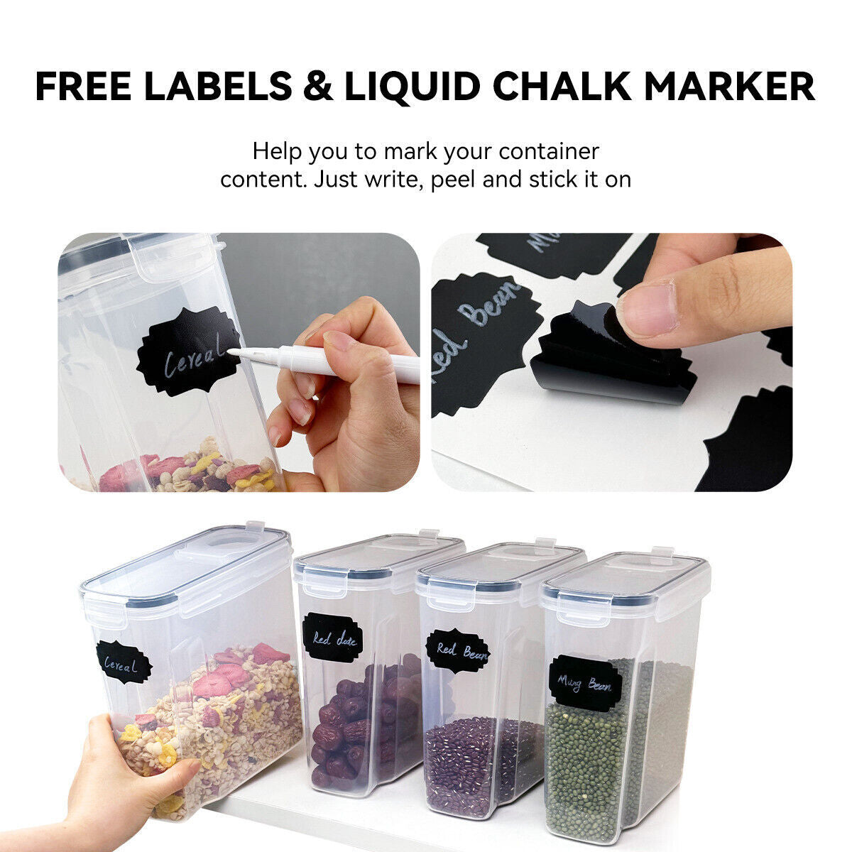 Included Labels: The set comes with labels, allowing you to easily identify the contents of each container and keep your pantry neatly organized.
