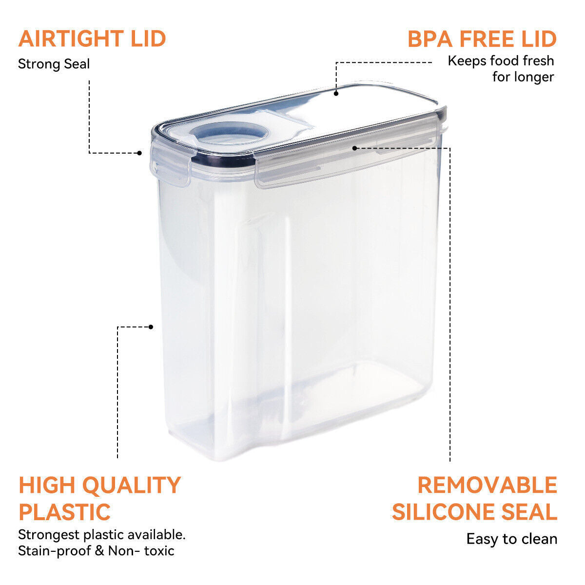 Airtight Seal: Each container features an airtight lid that ensures your food stays fresh by keeping out air and moisture, perfect for preserving the quality of flour, sugar, and other baking supplies.