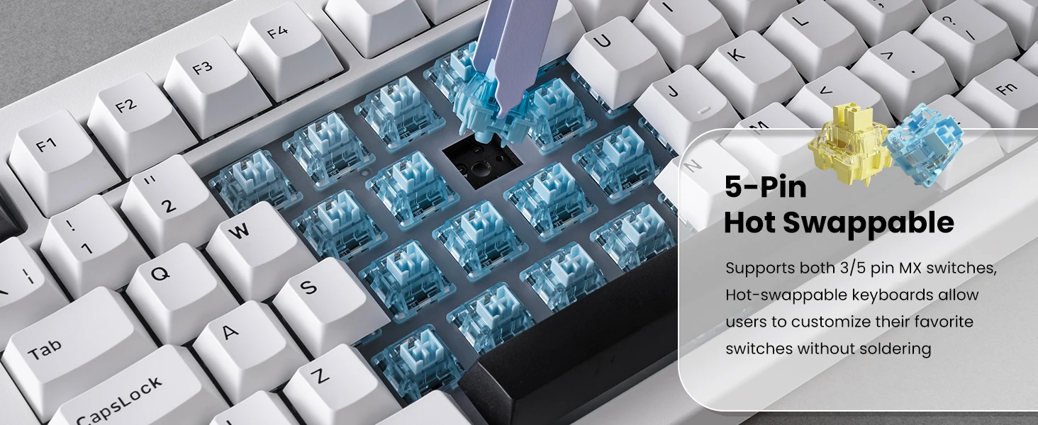 Equipped with premium hot-swappable sockets, allowing users to swap desirable switches afterwards.