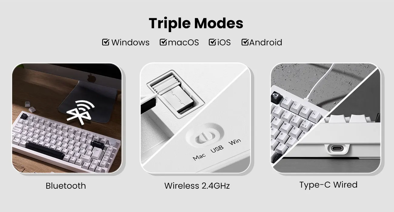 The solution is a convenient and versatile option for users who use multiple devices and want a keyboard that can easily switch between different modes of connectivity. The ability to connect using 2.4GHz wireless, Bluetooth, or Type-C makes these keyboards compatible with a wide range of devices, while the portability and battery life benefits make them a great choice for people who are frequently on-the-go.