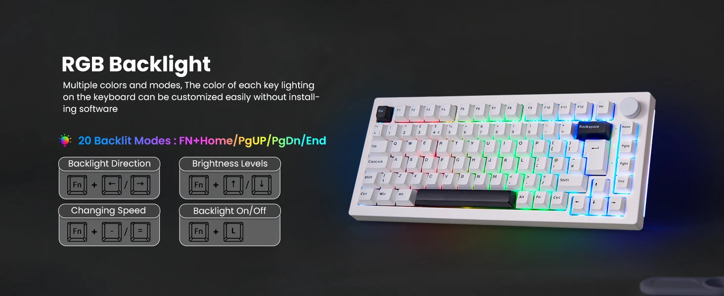 PBT Keycaps & Over 20 RGB Backlight Effects