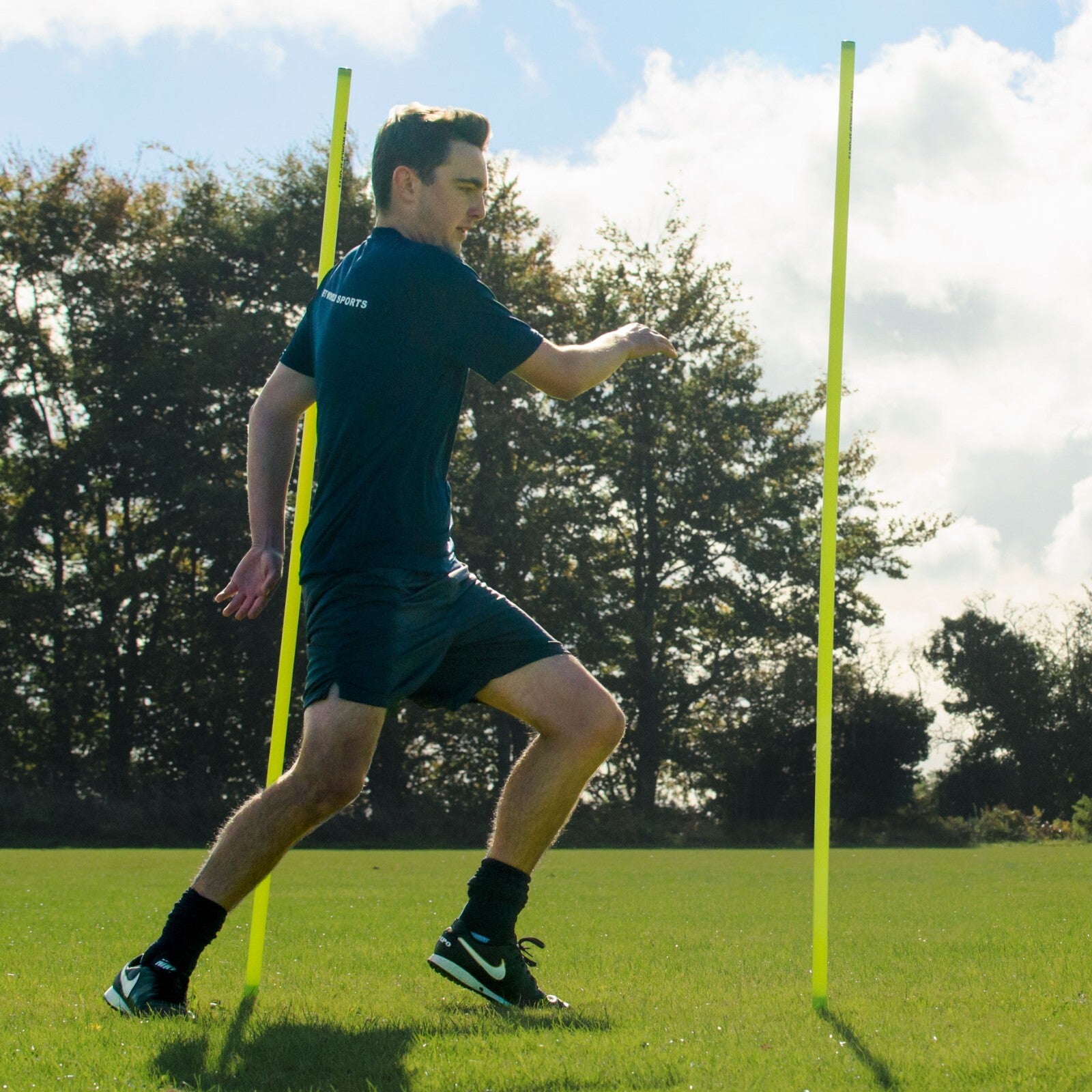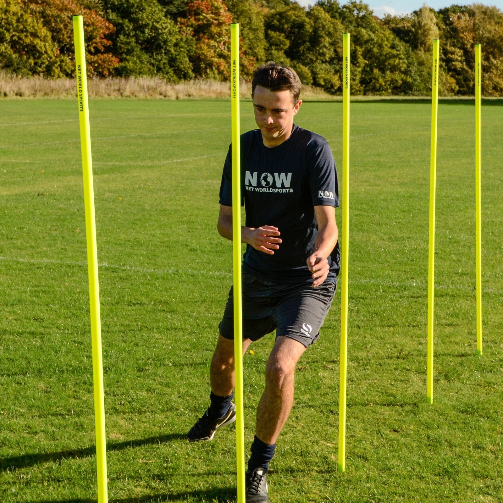 PLEASE NOTE: Slalom poles CANNOT withstand high velocity ball impact. We recommend using the training poles for agility & speed training.