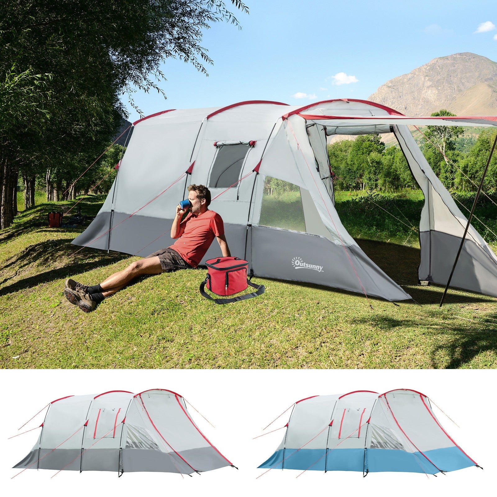 6-8 Person Tunnel Tent, Two-Room Camping Tent with Carry Bag