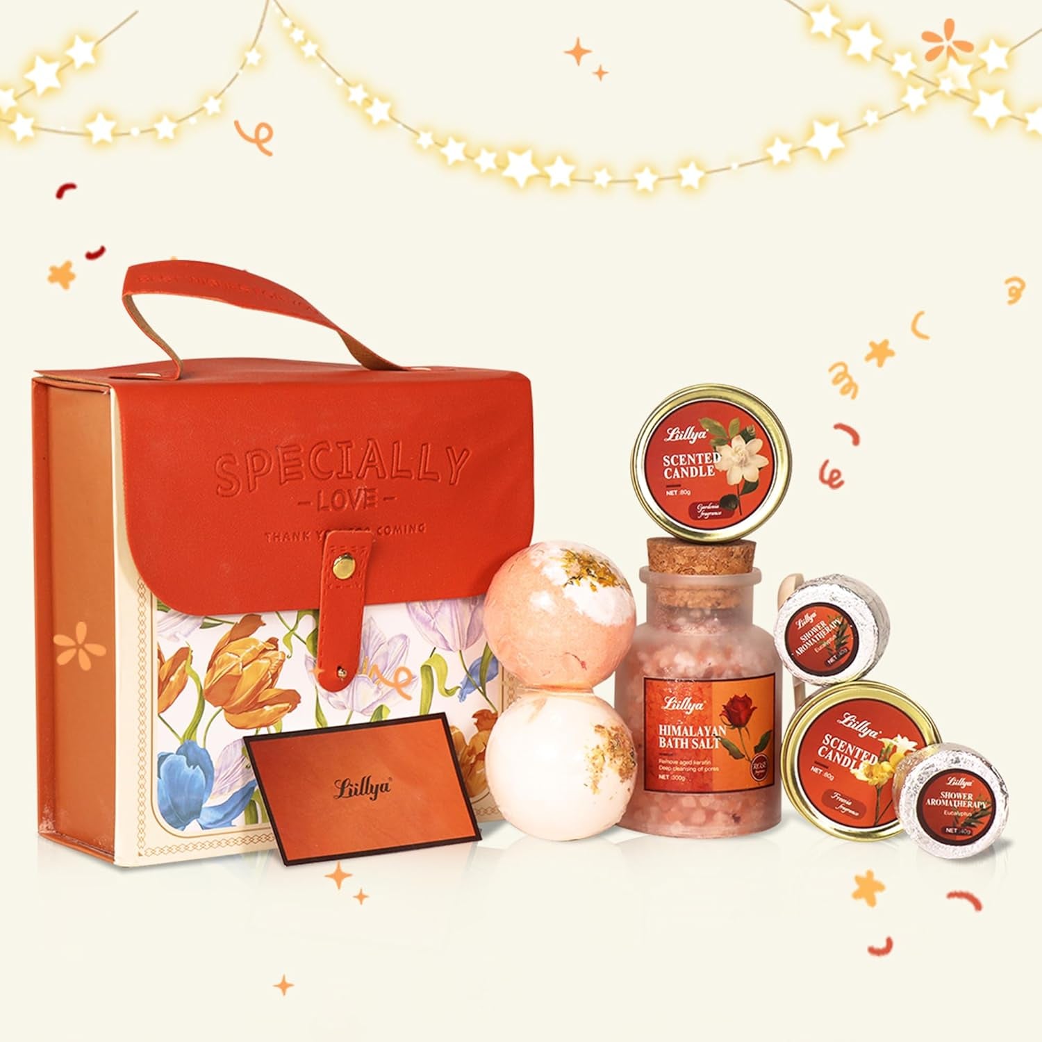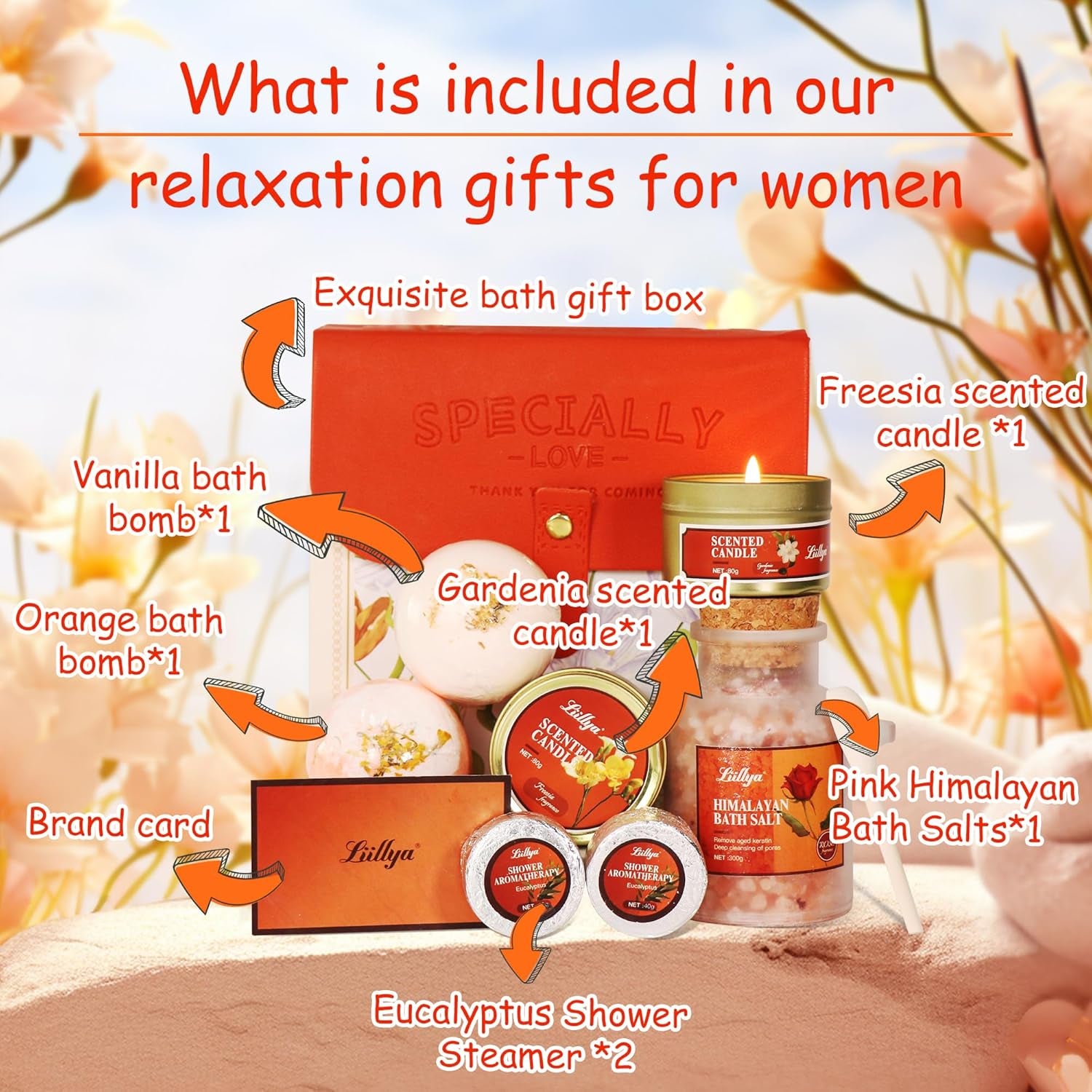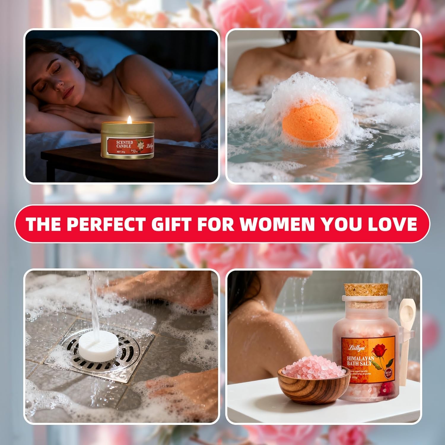 【7-piece Spa Set】: Each item of Liillya spa gifts set for women is carefully packaged, including Rose bath salt*1, Eucalyptus... Read more