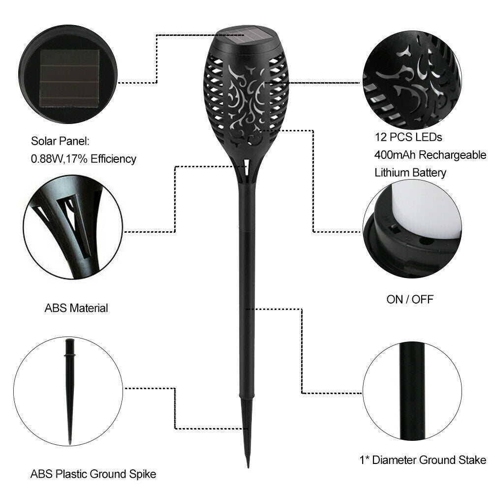 ✔ SOLAR POWERED: This dancing flame torch light collects solar energy all day under direct sunlight, then turns on automatically at dusk. The light runs on solar power, so you can place it anywhere under direct sunlight!