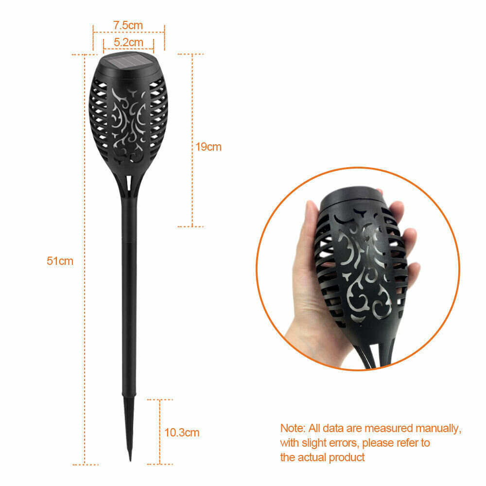 ✔ GORGEOUS DANCING FLAMES DESIGN: This outdoor solar lights torch light is a safe alternative to the real “flames” — LEDs in the light cast a safe, soft, mood-enhancing glow. The actual height is about 50cm.