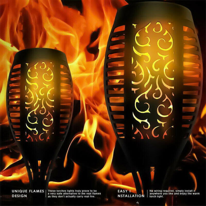 ✔ FAST&EASY INSTALLATION: No wiring required, simply install it anywhere you like (under direct sunlight) and enjoy the warm torch light.