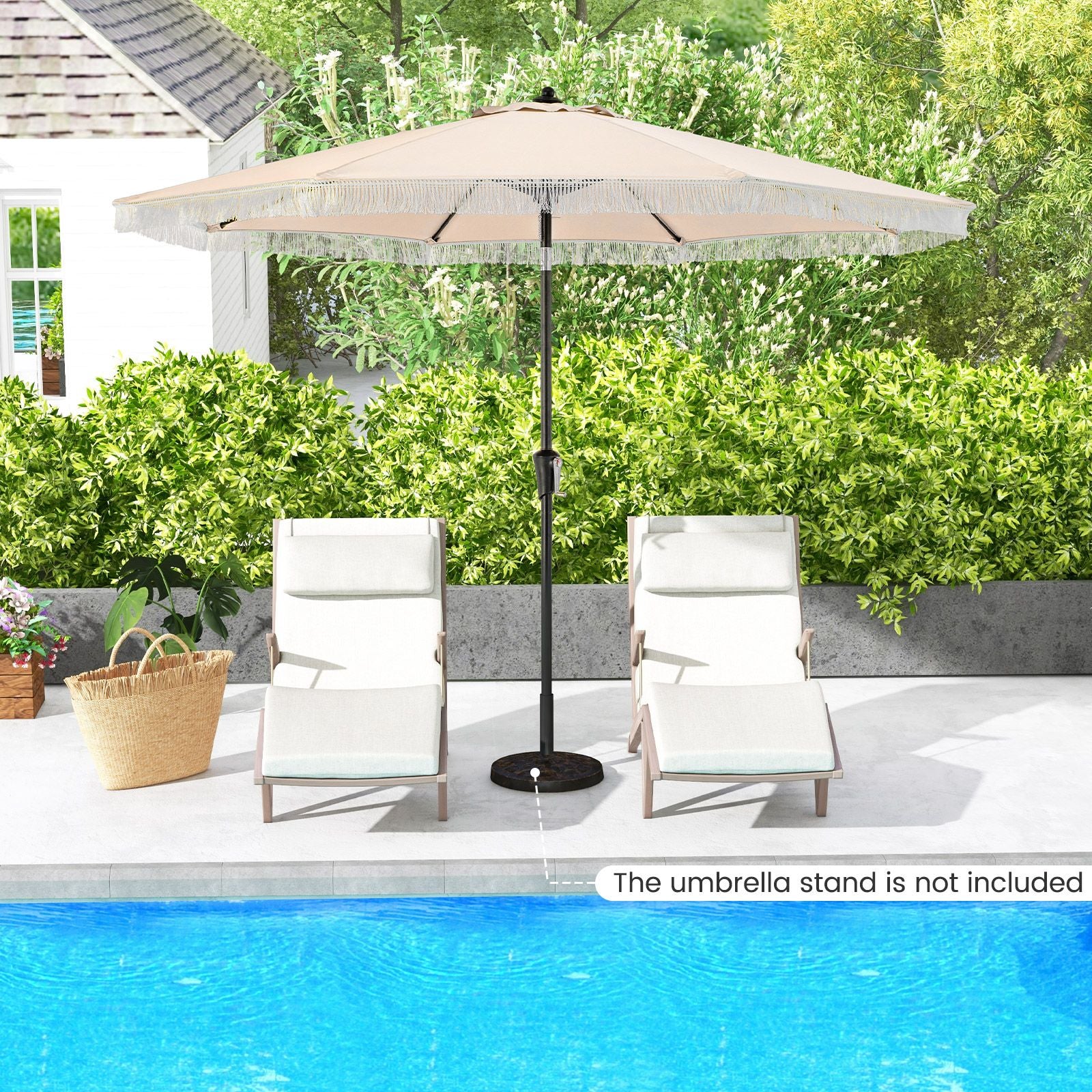 Protective Polyester Canopy: Crafted with selected polyester fabric, which is drizzle-resistant and sun-protective, the patio umbrella with fringe allows you to enjoy the outdoor breeze without worry. Additionally, the canopy is fade-resistant and not easy to fade, ensuring years of use.