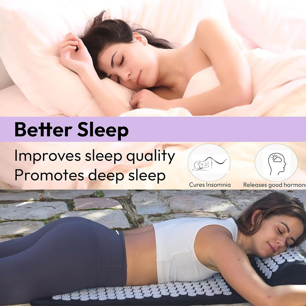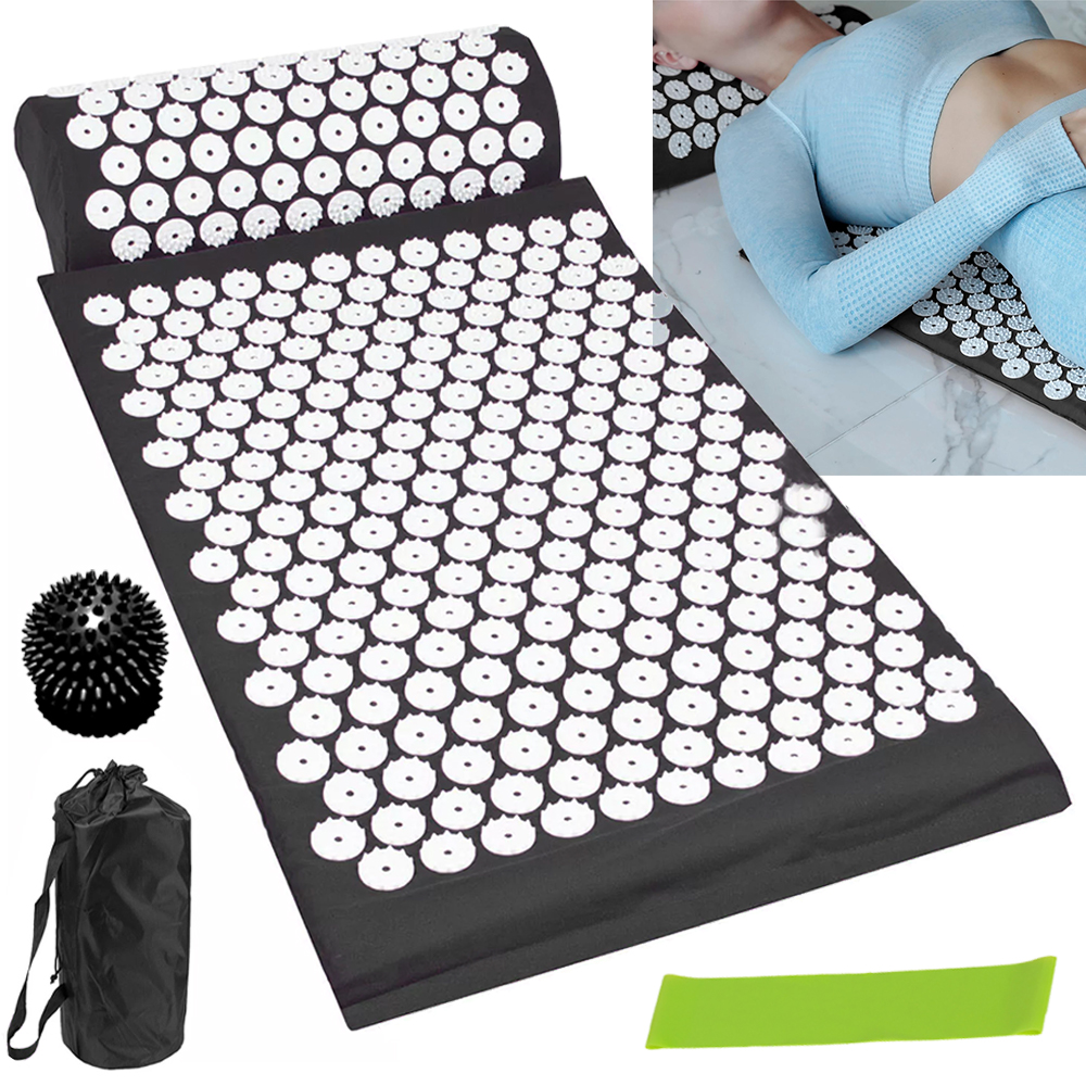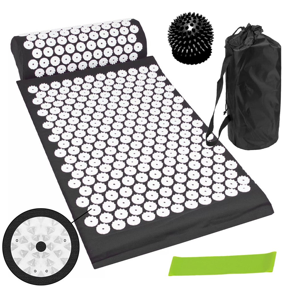 The 303 plastic discs, each with 27 individual pins, help stimulate the pressure points of the skin and encourage the body to release endorphins. Endorphins are the body's natural stress and pain relief so even as little as 15 minutes on the acupressure mat promotes muscle relaxation, stress relief and pain relief after a long day or tough work out. The acupressure mat set is also ideal for easing tension in the body to allow for a better nights sleep and alleviate headaches.