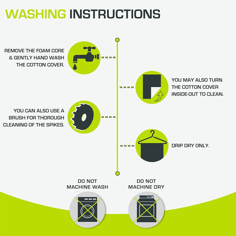 Acupressure Mat and Pillow work by applying pressure to various points on the body. Simply set the mat down (with or without the pillow) on the floor, bed or sofa and slowly lower yourself onto it. We recommend using skin contact on the mat but beginners will benefit from wearing a light t-shirt until your body gets used to the spikes. Lie on the mat between 15-40 minutes, several times a week, for maximum benefit. If using the pillow, position this in the neck crevice behind your head and allow your shoulder blades to drop back to the mat. The pillow and mat combination works best for sleep and back pain.