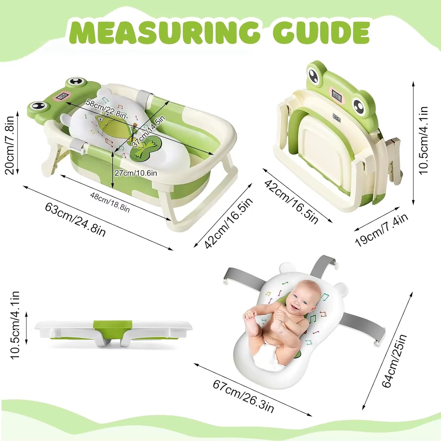 【Collapsible & Portable】The upgraded baby tubs for newborns can be easily folded in half, making it convenient to store and fit into any corner, saving space. The foldable design makes it easy to carry, especially suitable for use while traveling.