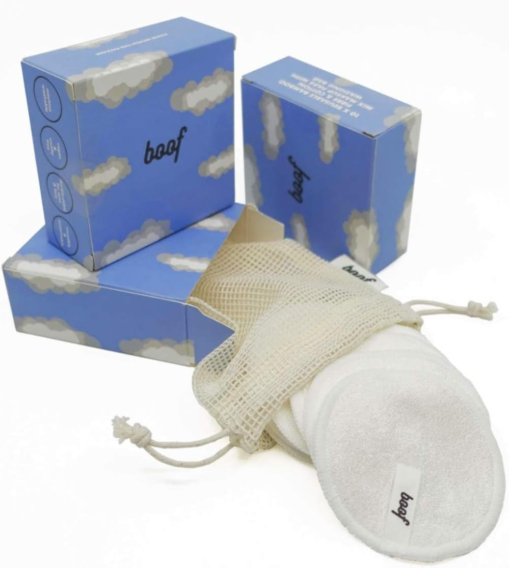 NEW Boof Bamboo Fibre & Cotton Reusable Makeup Remover Pads (10 Pcs) with Washable Bag | Eco-Friendly, Kind to Skin, Super Soft