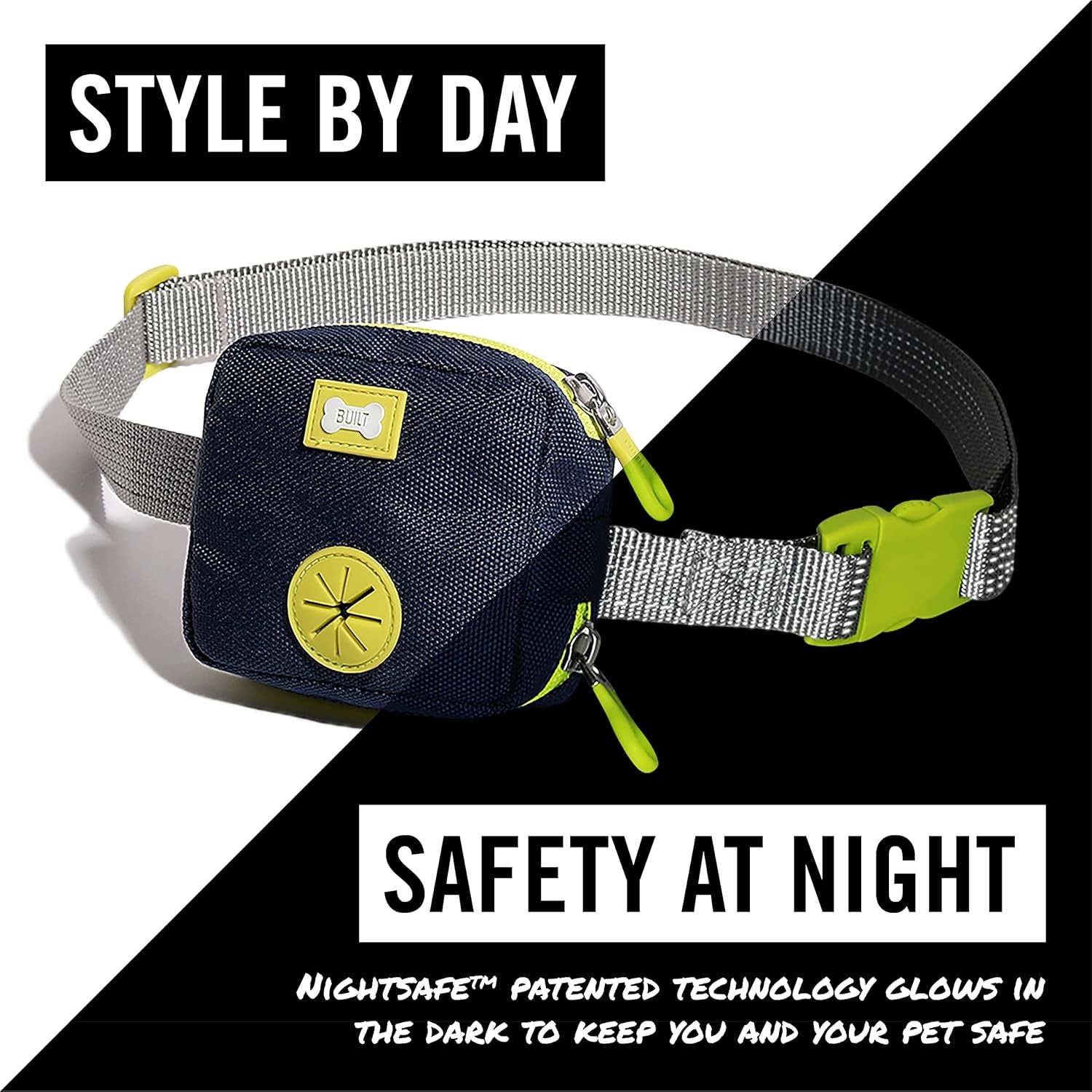 BUILT PET Nightsafe Reflective Dog Walking Belt Bag, Poop Bag Holder & Treat Sto