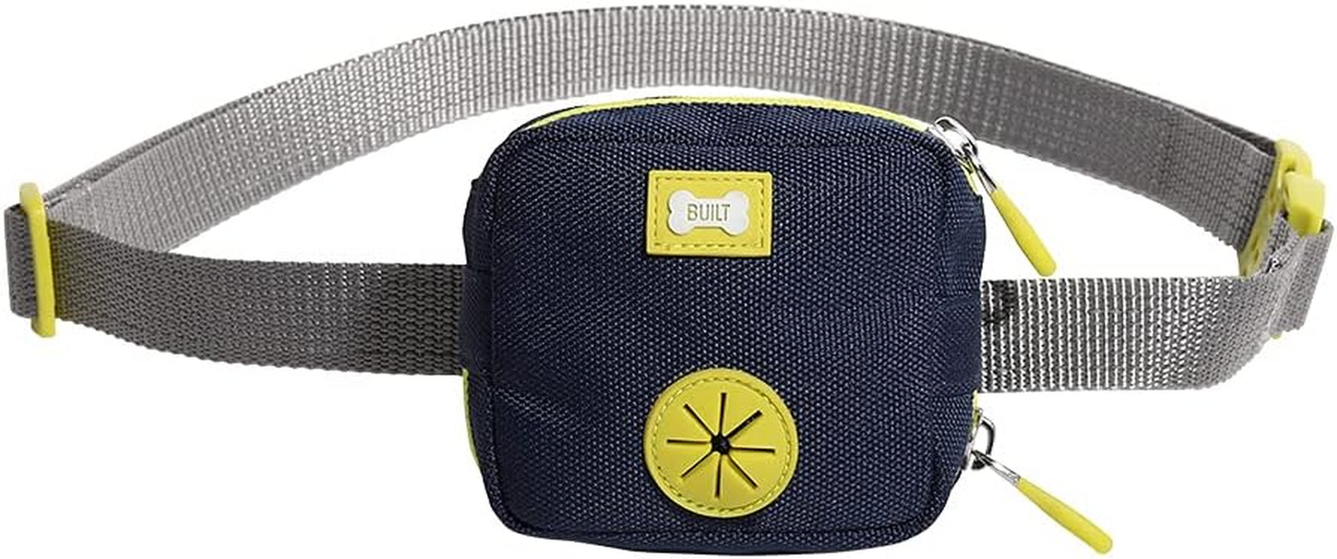 "Make walkies a walk in the park with this compact dog-walking waist bag from BUILT. The handy mini carry pack can be worn as a bum bag or a cross body bag, and is small and lightweight yet roomy enough to fit poo sacks, treats and a few other essentials. With separate compartments for treats and poop bags, it has everything you need to keep pooch happy while you both exercise. Simply clip it on and enjoy easy access to those much-needed dog-walking bits, so nothing can get in the way of your walk, hike or jog. Both the treat pouch and waste bag dispenser have zips to keep things secure and accessible, and the dispenser features a silicone ring for even faster access (because when doggy's gotta go, doggy's gotta go!). There's a handy hidden slip pocket too, where you can stash your house key, credit card or a bit cash if you’re running to the shop or going via the coffee shop. Like all of BUILT's fabric pet accessories, this clever multi-tasking dog-walking belt bag features NightSafe technology. By day, it appears as classically stylish blue and grey. By night, it becomes a reflective fabric to keep you and your pup extra safe. The carry pouch and strap are made of robust 900D polyester. The strap adjusts from 70cm (27.5 inches) to 124cm (49 inches), ensuring a comfortable fit for most people. Love the look? BUILT PET has a range of pet accessories, for walking and play. For complete coordination, pair with BUILT's matching NightSafe lead and collar. Includes one BUILT PET NightSafe Reflective Dog Walking Belt Bag - Poop Bag Holder & Treat Storage Pack, small."