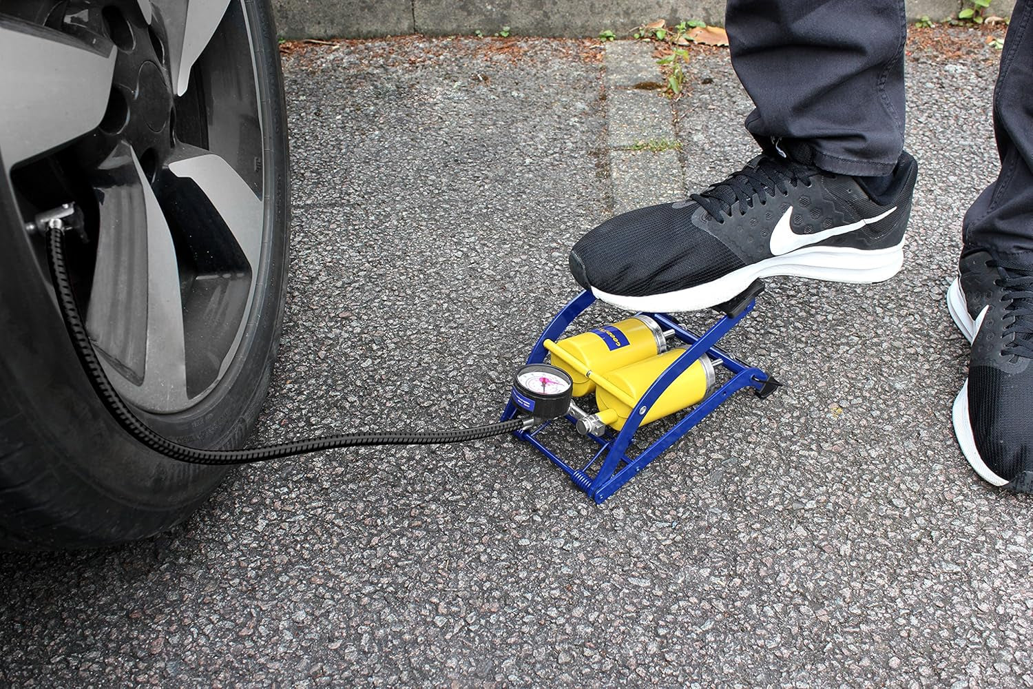 by Vivo © Single/Double Barrel Cylinder Tyre Foot Pump Air Inflator Car Van Bicycle Bike Air Bed Football Inflatable