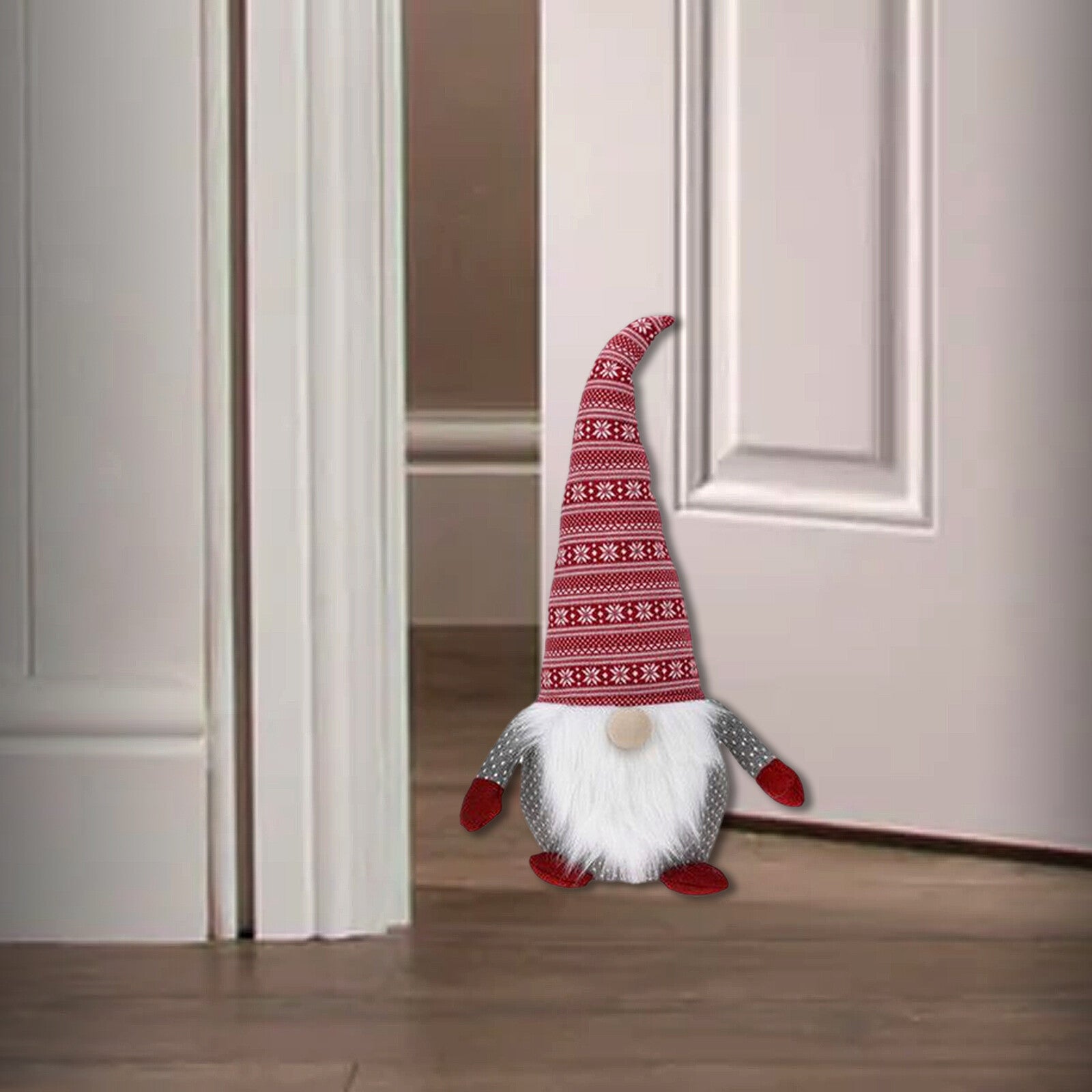 Christmas Gnome Plush Door Stop Door Stopper Large Heavy Fabric Novelty Xmas Décor Christmas Gonk Decoration Red White Grey 51cm.