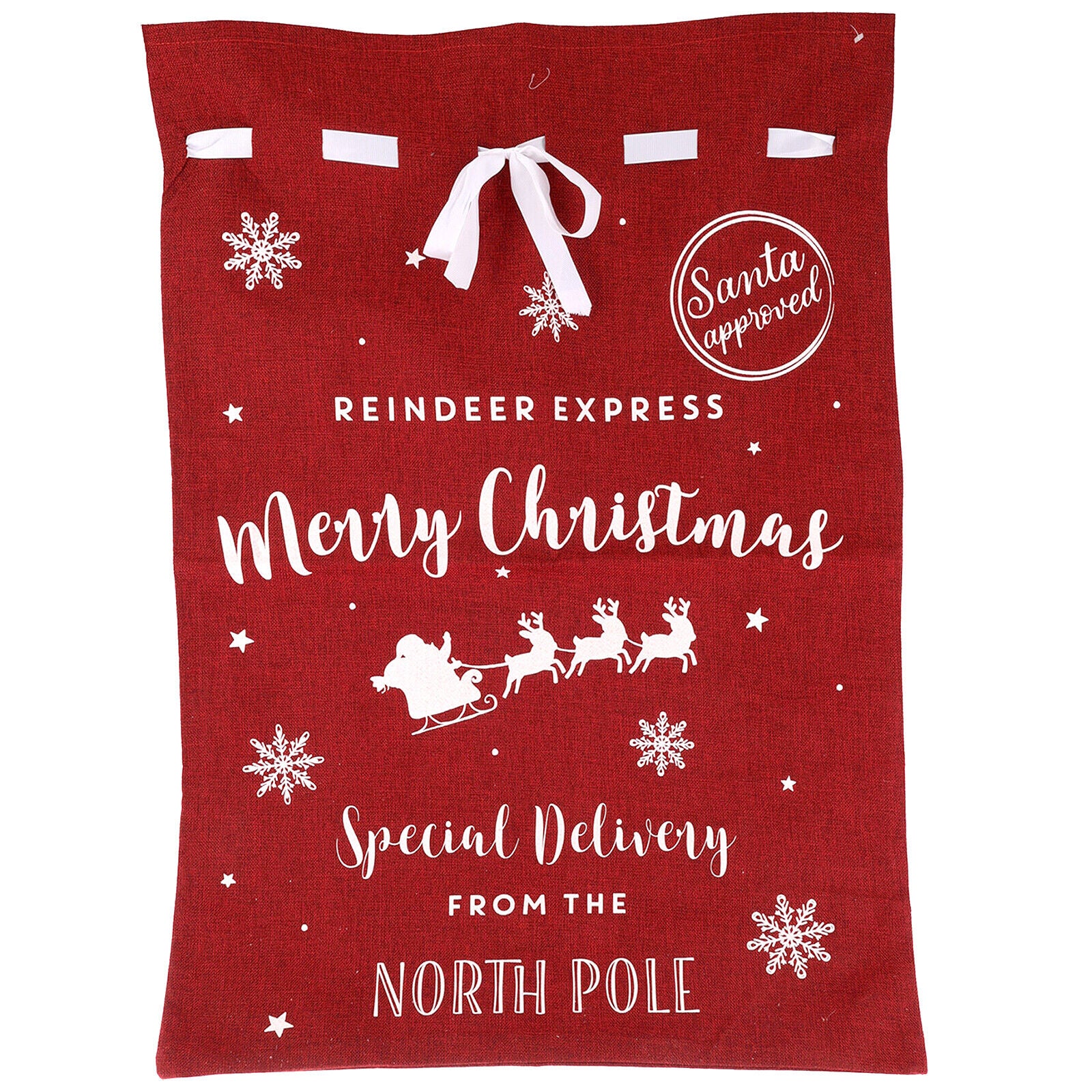 Christmas Sack Jute Drawstring Gift Bags Reusable Wrap Present Xmas Gift Stocking Storage Bags Decoration Santa Reindeer Snowman XL Extra Large.