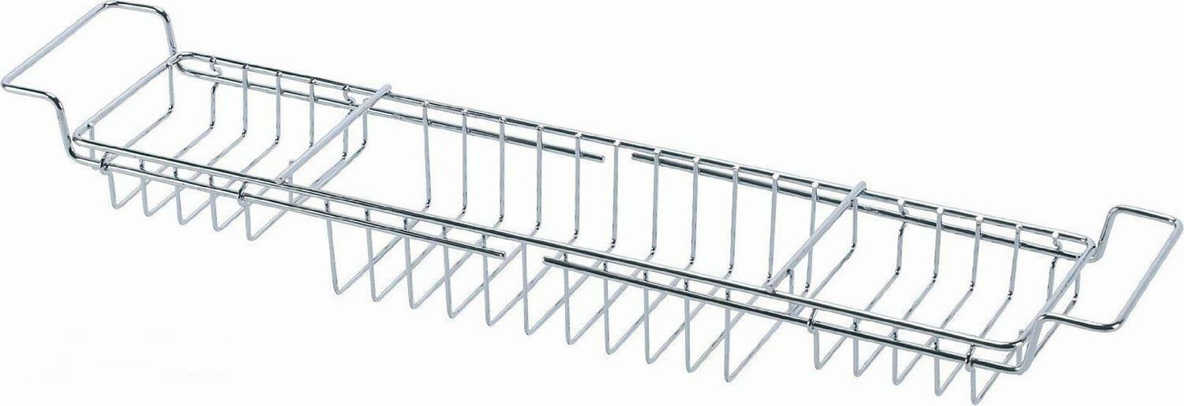 Chrome Bath Tub Rack Extendable Shower Shelf Tidy Caddy Tray Storage Holder Finished In Stunning Chrome And Features Black Non-Slip Handles. Ideal For Storage Of Soaps And Accessories. Over Bath Storage Rack That Can Be Adjusted To Fit Any Bath. Non-Slip Grip. Easily Adjustable. Easy To Clean. Portale And Lightweight. Durable And Strong Construction. About Us