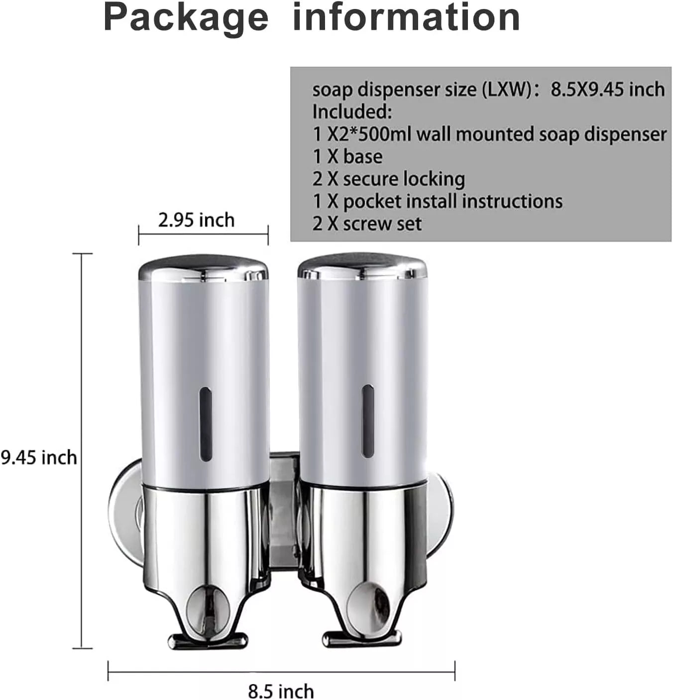 500ml Single Dispenser: Compact and efficient, perfect for smaller spaces. Size: L24cm x W12cm x D10cm.