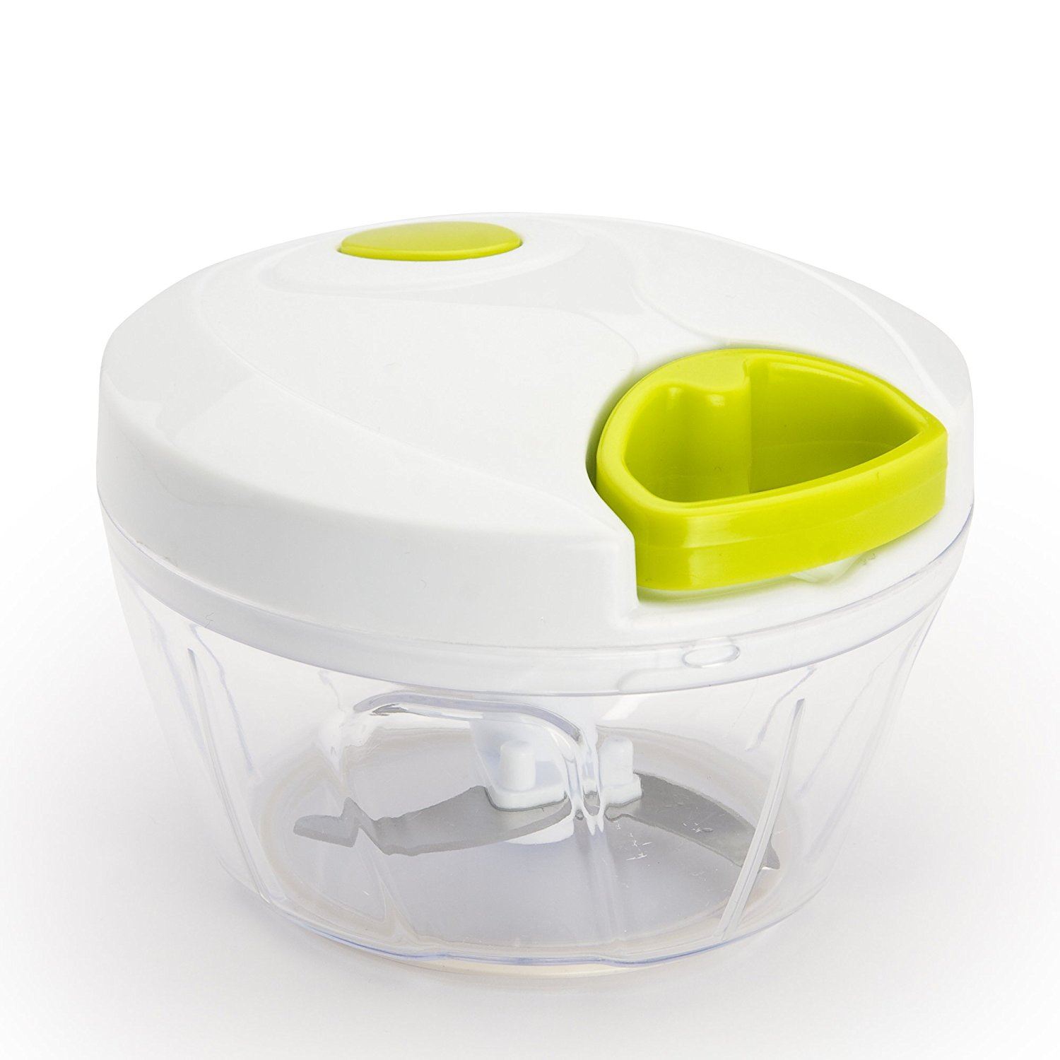 • CHOP, SHRED OR PUREE. Pull the easy-grip handle multiple times to chop increasingly finer pieces: 3-4 times to spin the spiral razor-sharp blades for coarse dices (think chunky soups), 5-10 times for medium-sized pieces (think homemade coleslaw), 10-20 times for very fine shreds/slices (think delicious pesto) or 20+ times for smooth liquid purees, perfect for smoothies and homemade baby food during the weaning process. Perfect for 'at home' cooks and kitchen ninjas.