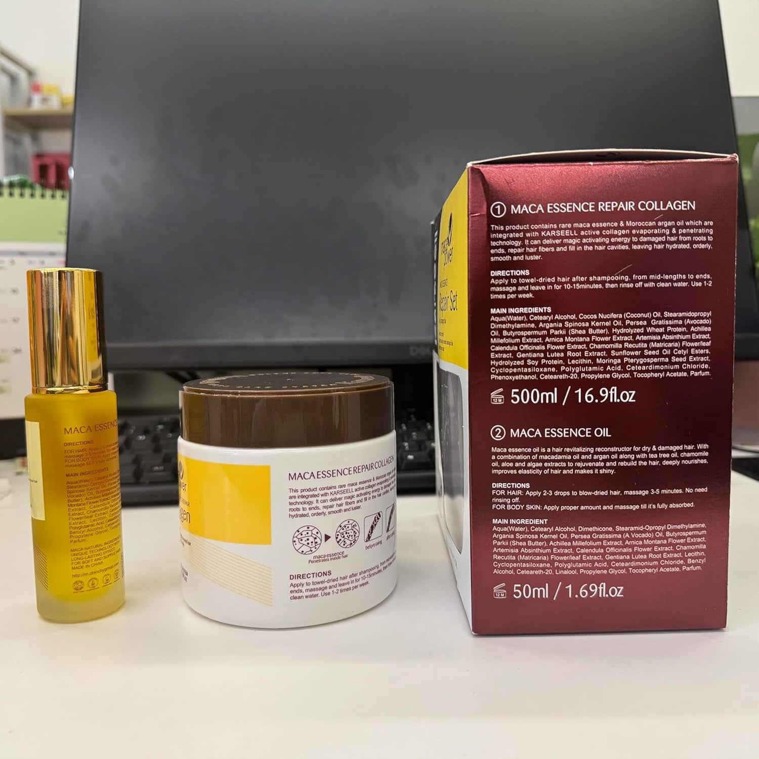 Collagen Maca Essence Repair Set, Collagen Hair Mask 500Ml & Maca Essence Hair Oil 50Ml, Argan Oil Hair Treatment for Dry Damaged Hair All Hair Types