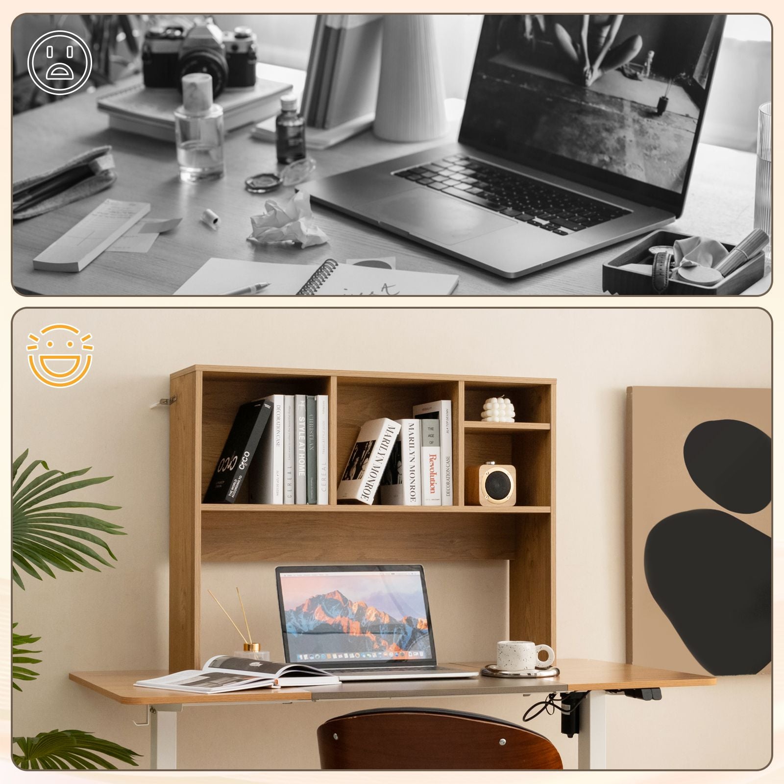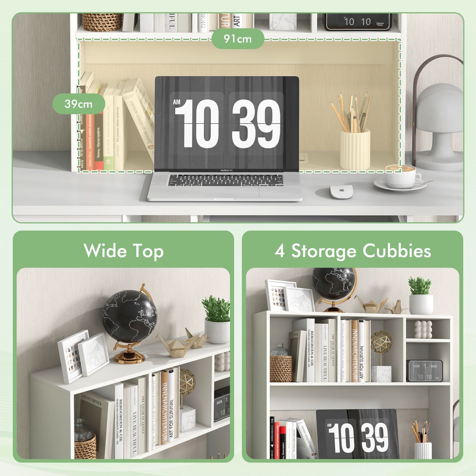 Organize and Declutter Your Computer Desk: Would you like to add storage space to your small computer desk? Try this tabletop bookshelf! With a 94CM x 39CM bottom compartment and 4 storage cubbies, it can help to make full use of the vertical space.