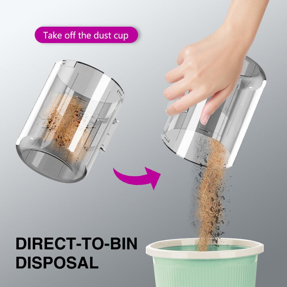 - 0.5L capacity for dirt. Release the trapped dirt from the dustbin with one click operated button.