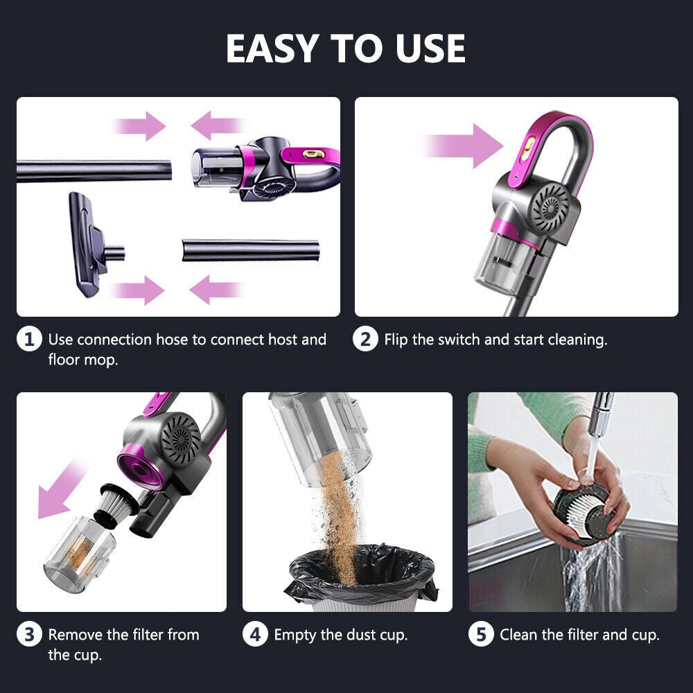 - 120W Cordless Handheld Vacuum Cleaner Upright Stick Bagless Dust Hoover Vac