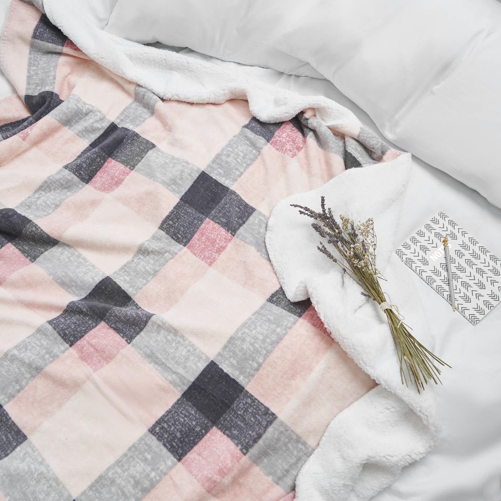 Dreamscene Check Sherpa Flannel Fleece Blanket Throw over Sofa Tartan Plush Warm