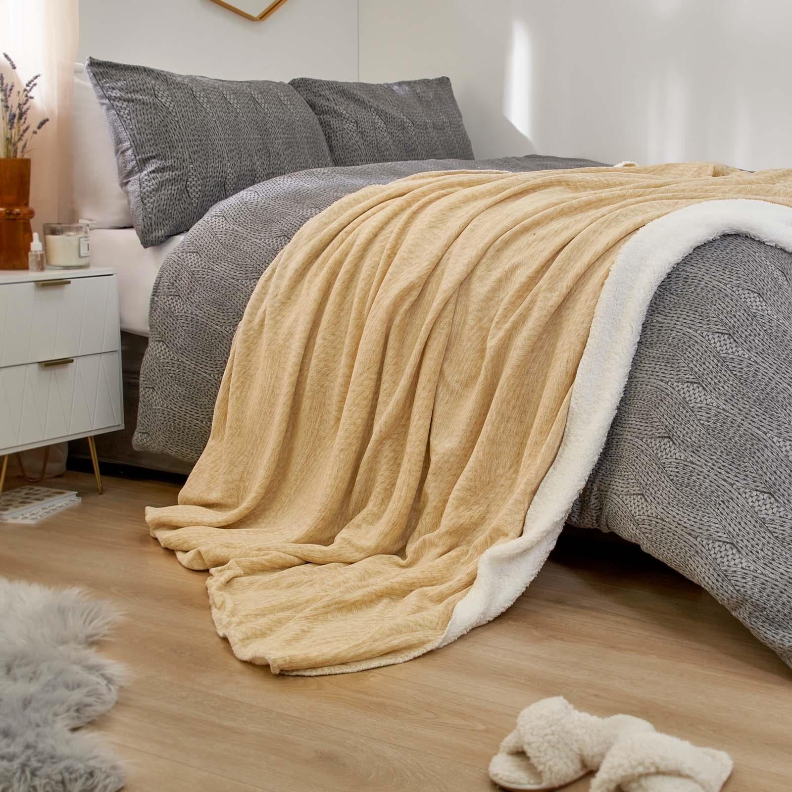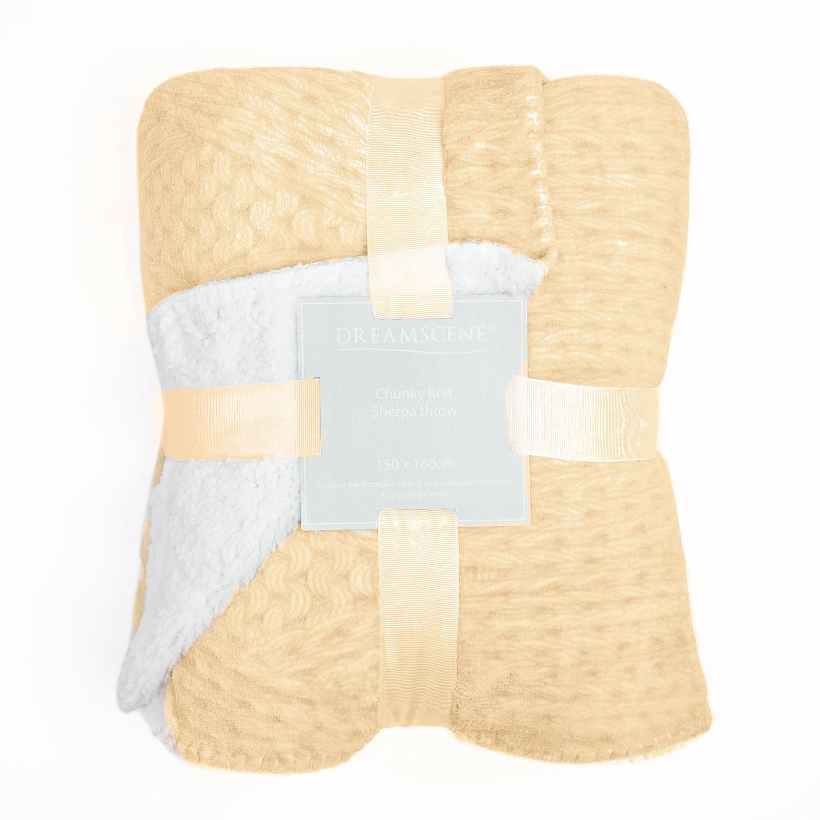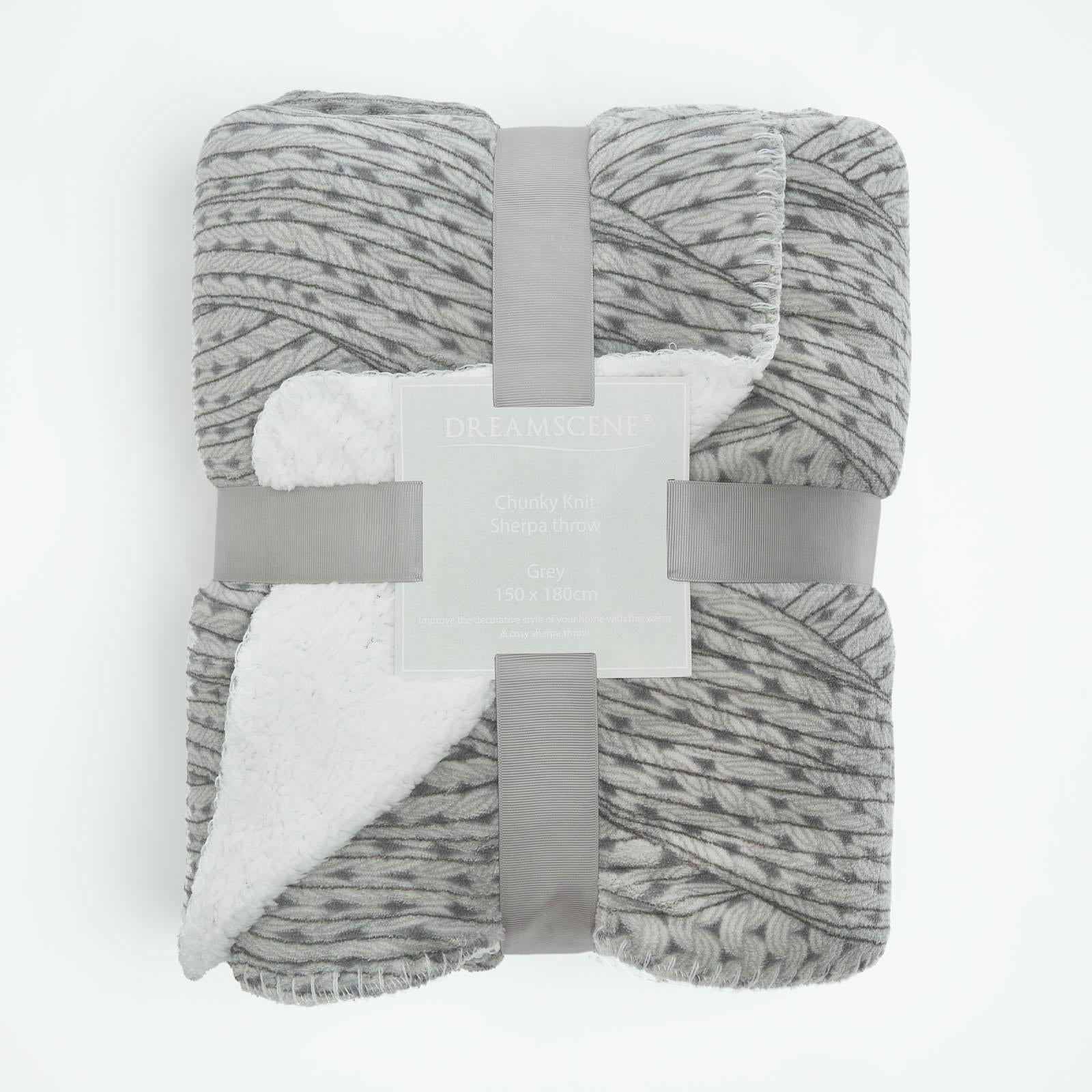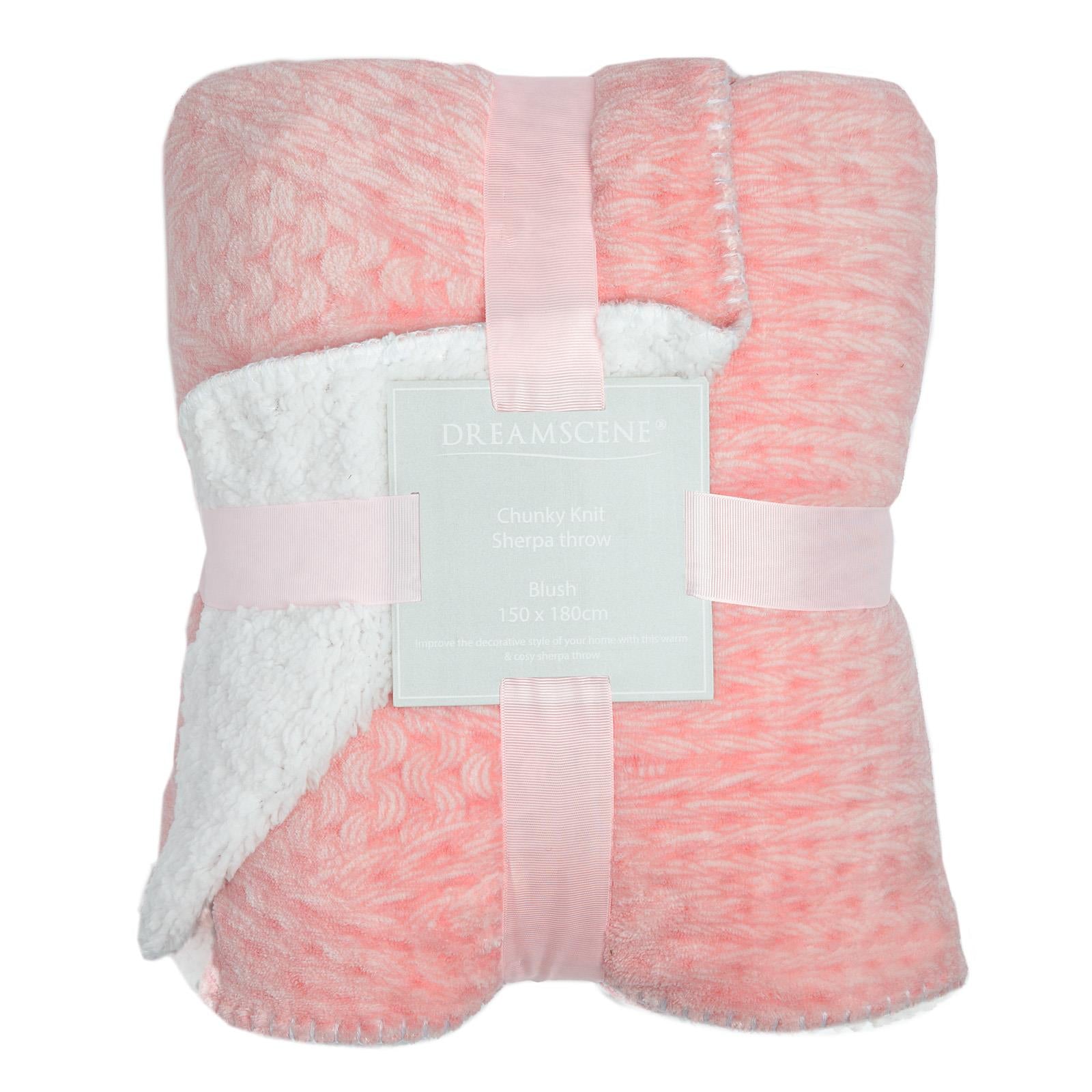 Dreamscene Chunky Knit Print Sherpa Fleece Blanket Flannel Soft Warm Throw Over