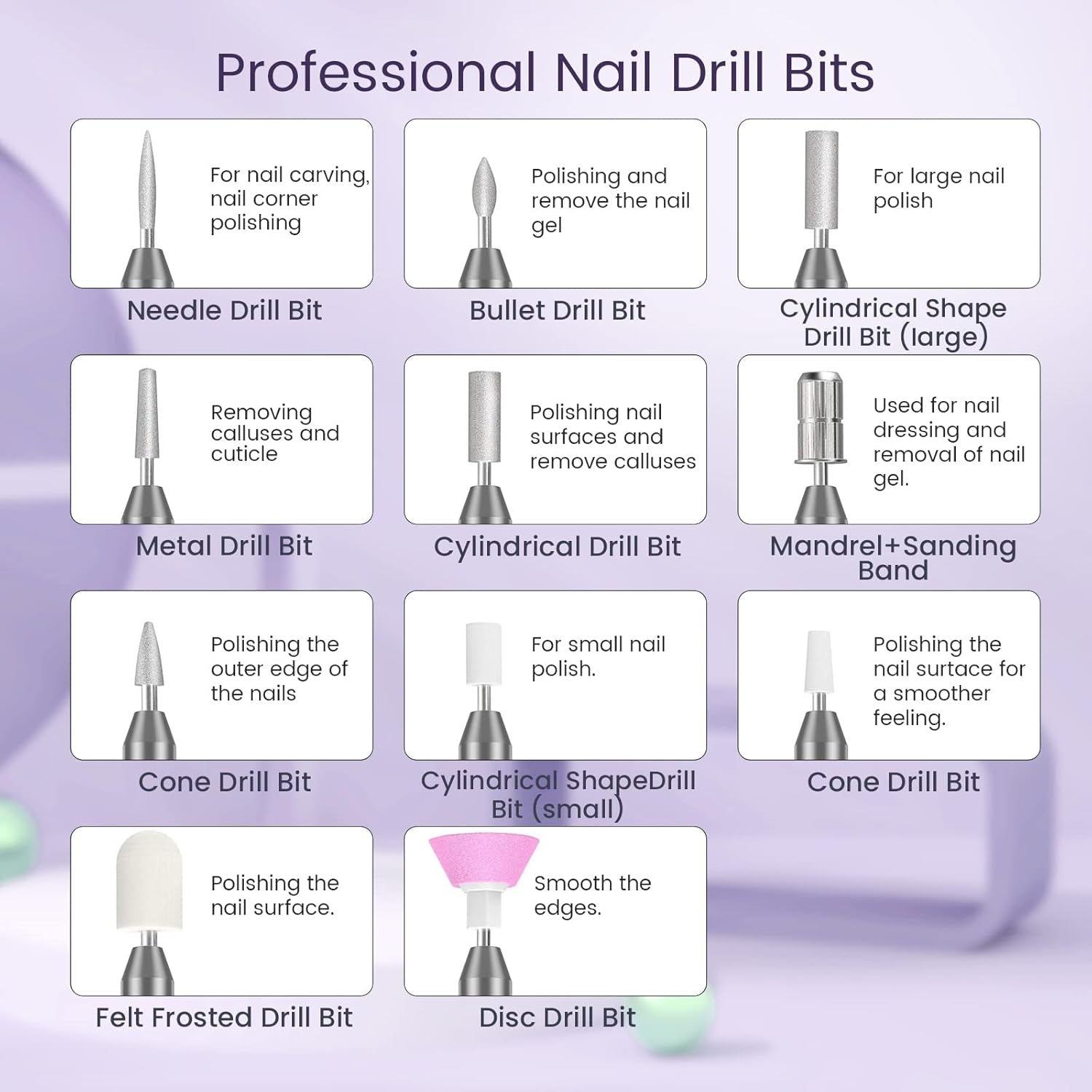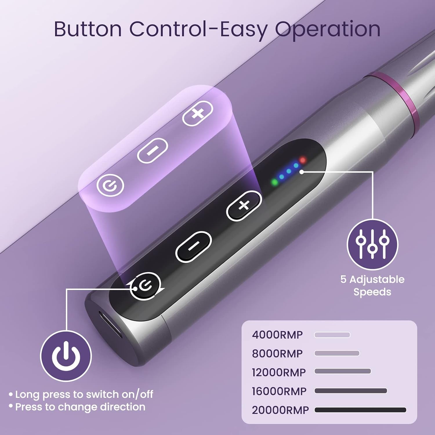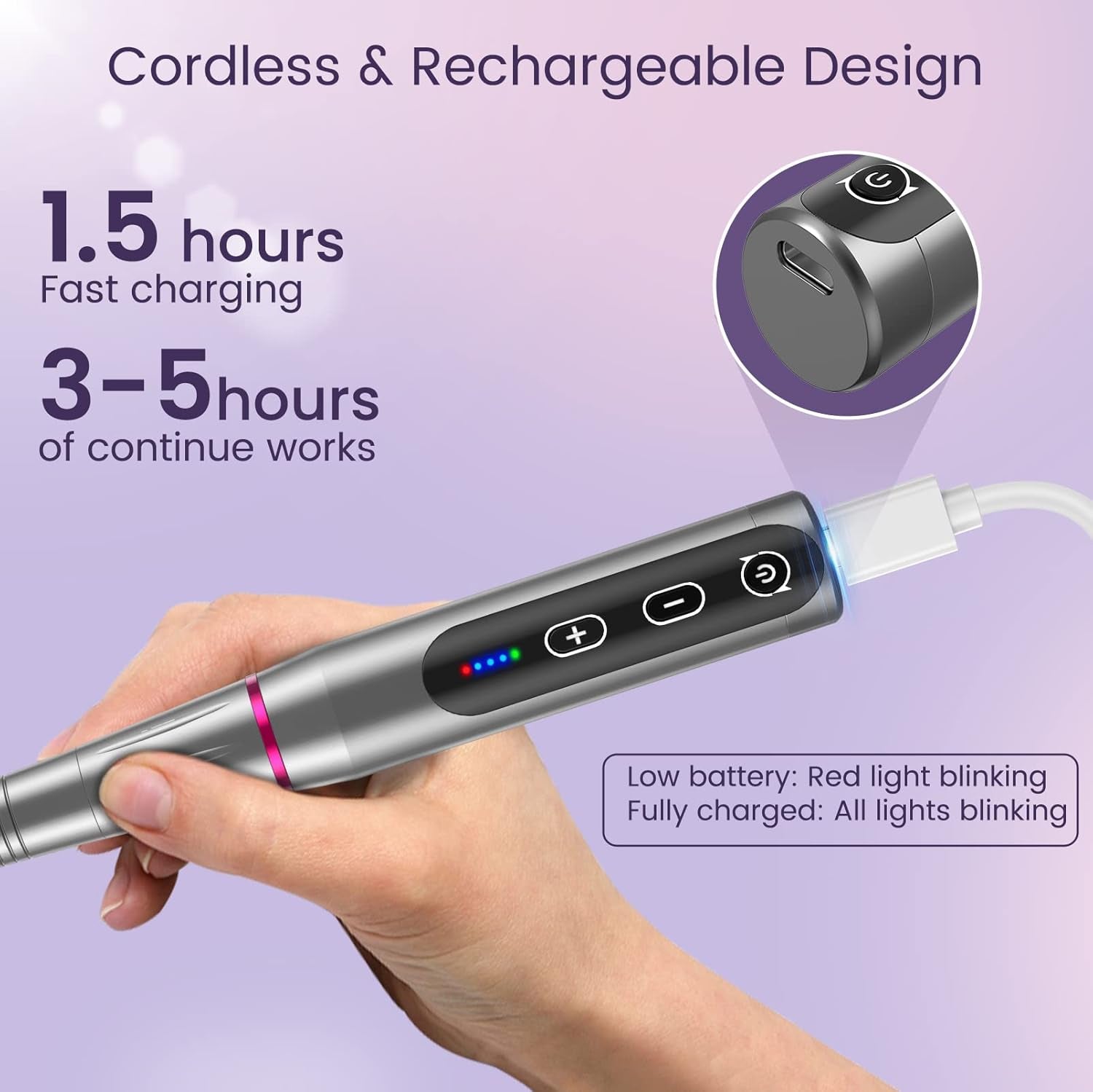 Electric Nail Files, Cordless Nail Drill Rechargeable, 5 Adjustable Speed E File, Professional Electric Nail Drill for Acrylic Nails with 20000 RPM, Portable Manicure Pedicure Kit Gifts for Women Mum
