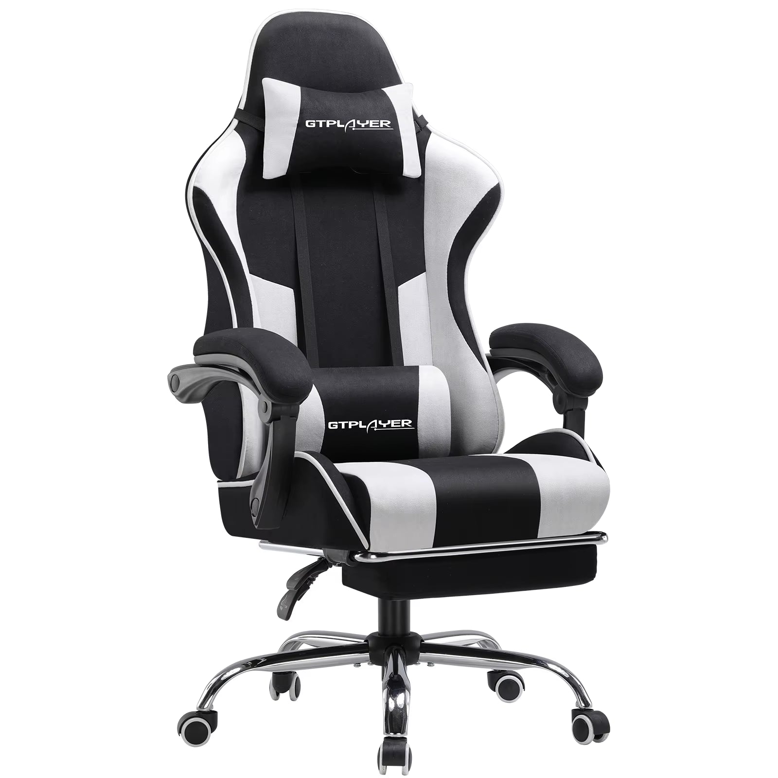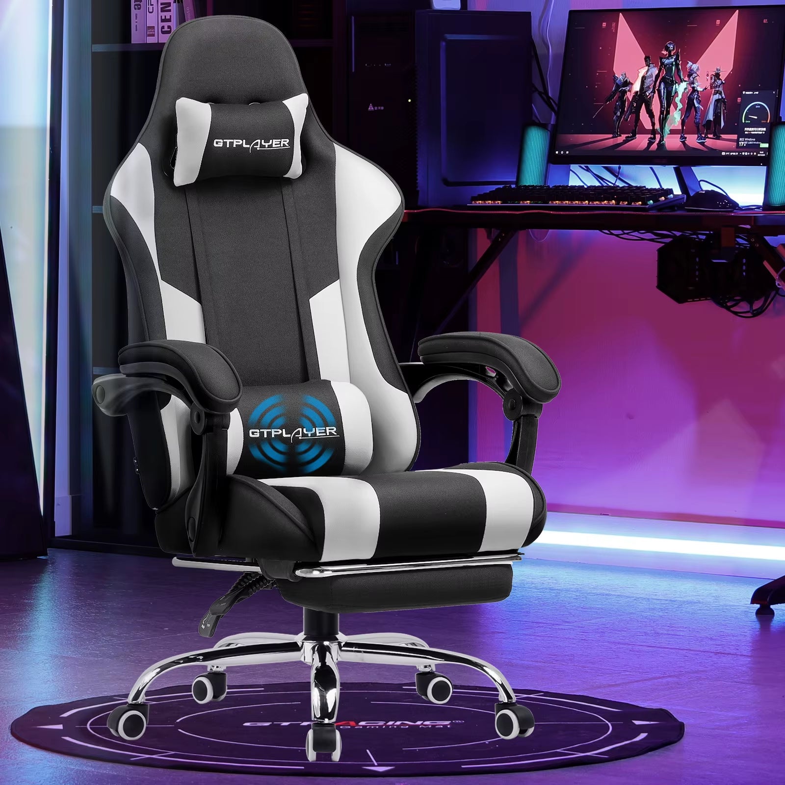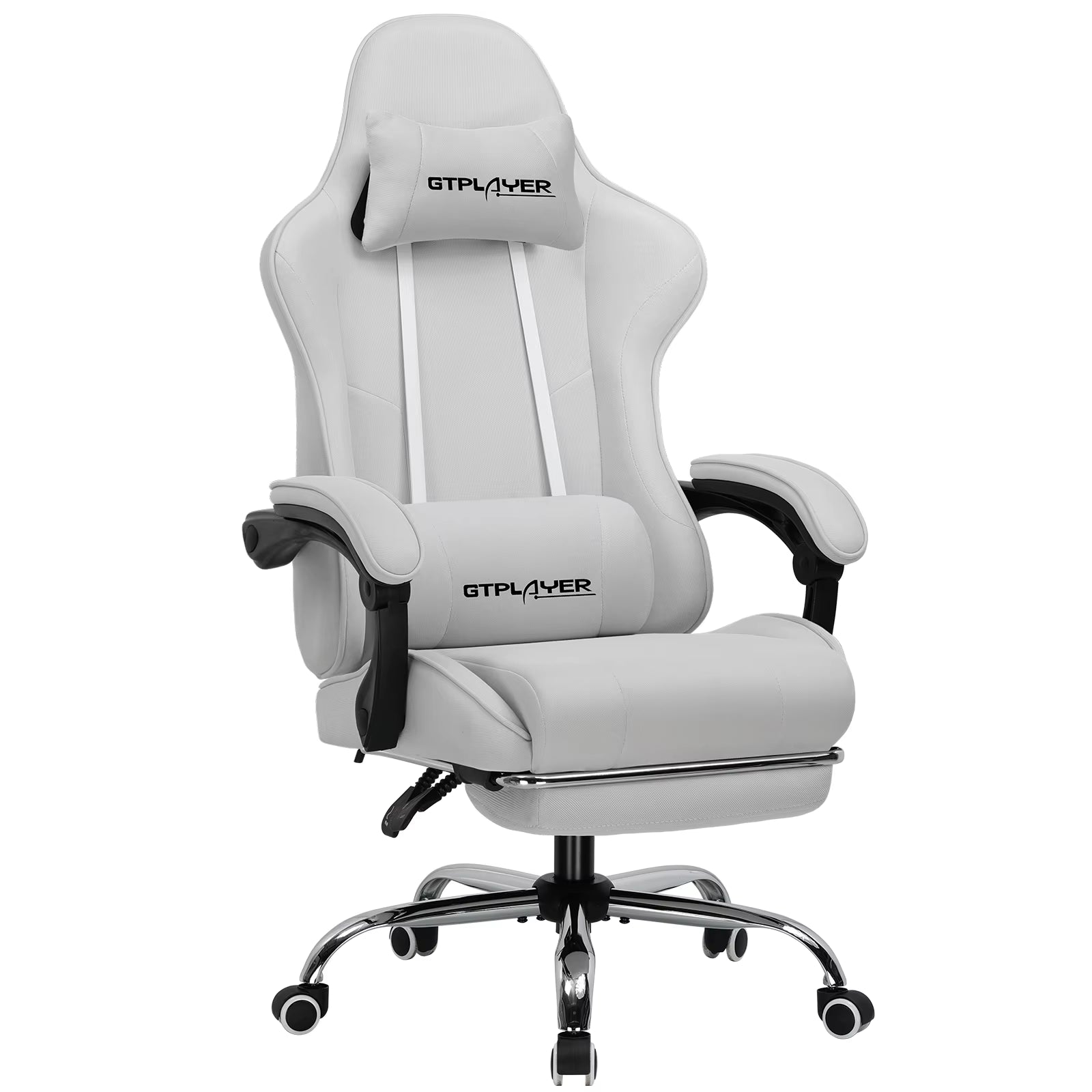【Comfortable and Relaxing】 After multiple measurements and calculations, GTPLAYER crafted this ergonomic frame of gaming chair which fits human spine curve better. 2 Adjustable pillows together created a personlized fully support for your neck and back. With extra padded seat cushion you will forget time when sitting on this computer chair. And don't forget our unique massage lumbar pillow which will help you to relieve the pain in waist and back.