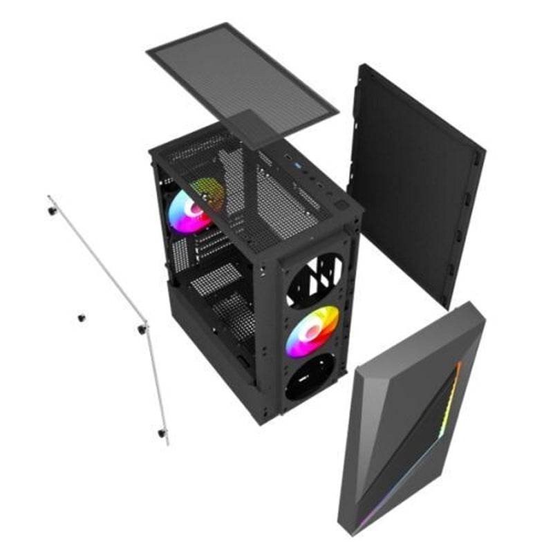 The VIDA Genesis Micro-ATX black chassis is a modern and sleek Micro featuring a solid metal construction, mesh front and tempered glass panels, a premium choice for enthusiasts. Featuring a tempered glass front and side panel to show off the stylish four pre-installed fans beautifully illuminating the internal, keeping your gaming PC running at optimum temperatures.