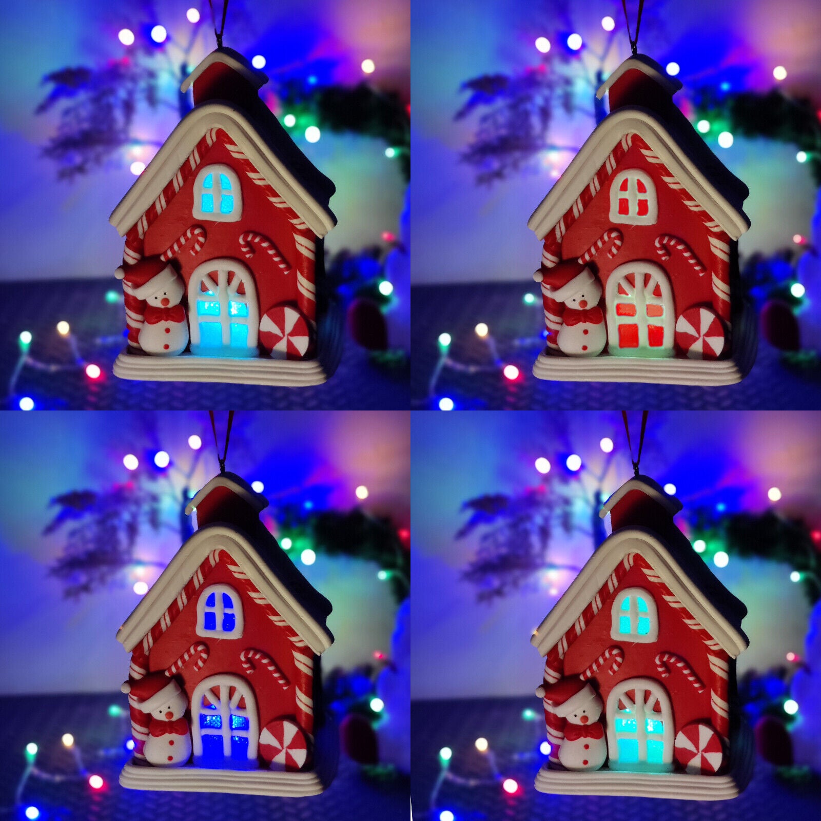 Gingerbread House Christmas LED Hanging Light Up Colour Changing Miniature Ornament Xmas Tree Decoration Winter Festive Home.