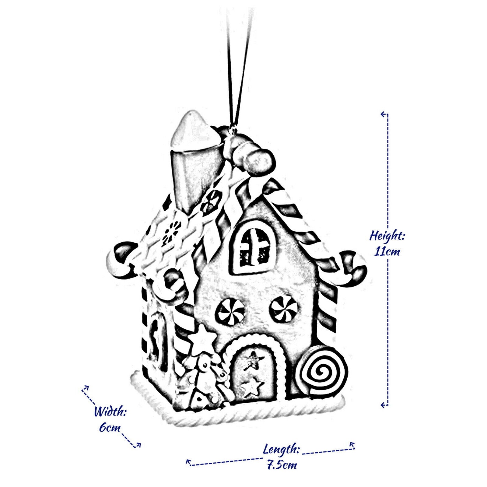 Dimensions of each gingered house are - Approx. Height: 11cm x Length: 7.5cm x Width: 6.5cm.
